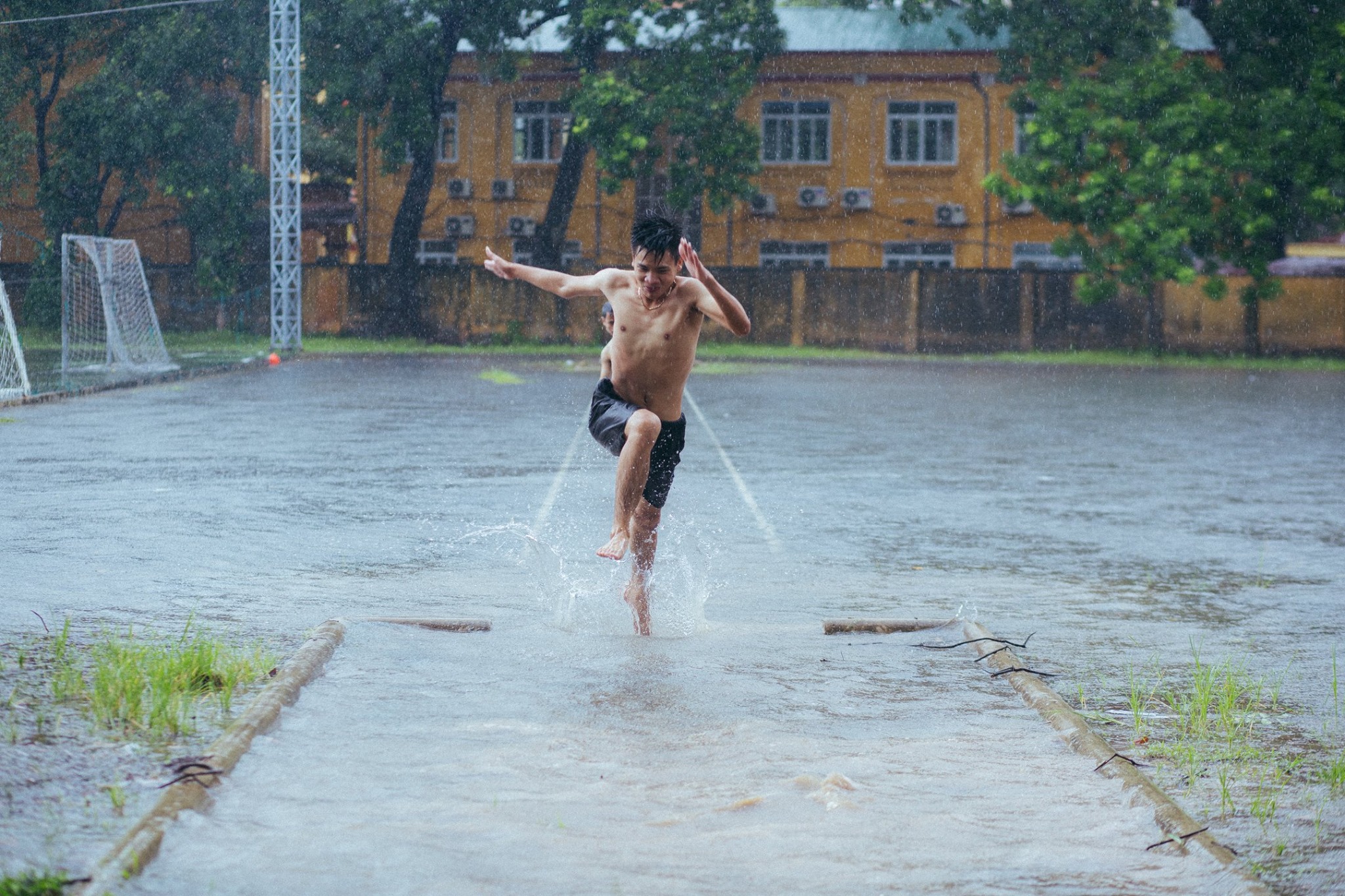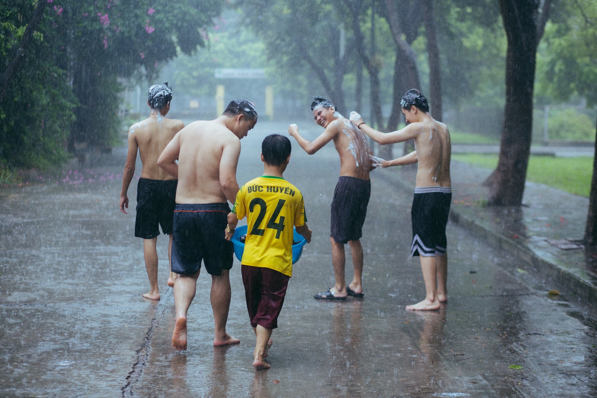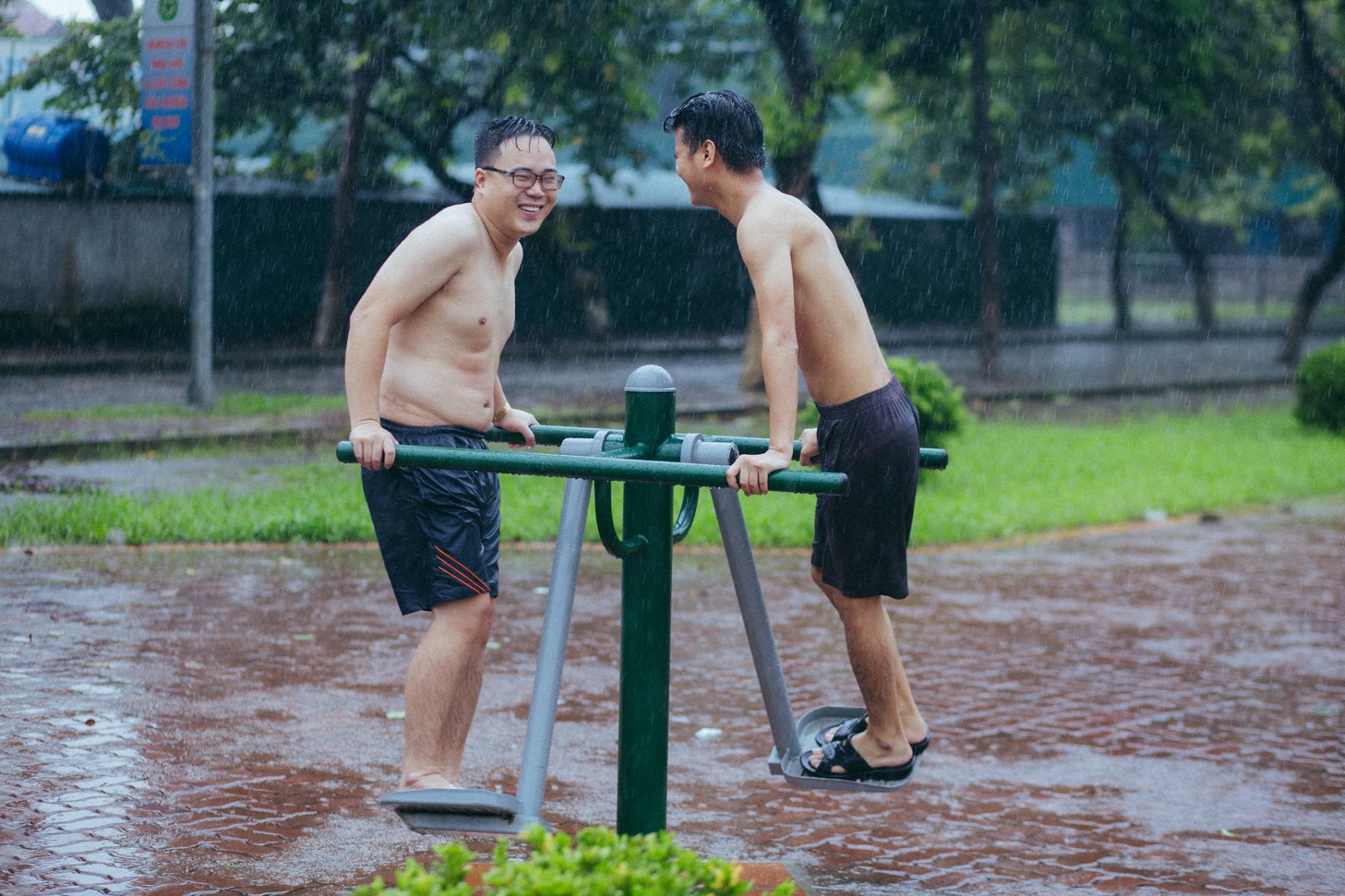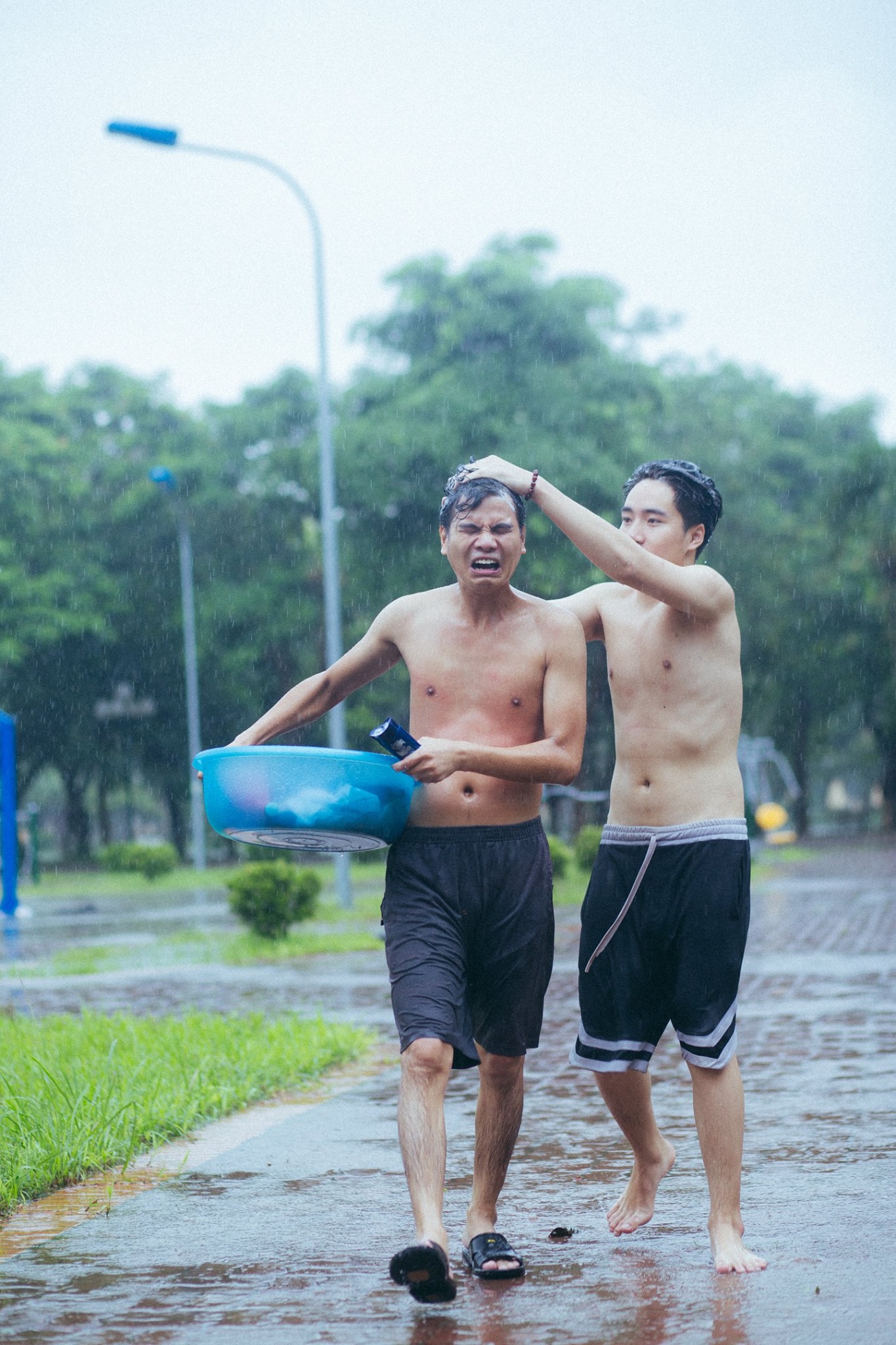 Nhóm bạn thân nảy ra ý tưởng “tắm mưa” giữa tình hình thời tiết bão bùng.