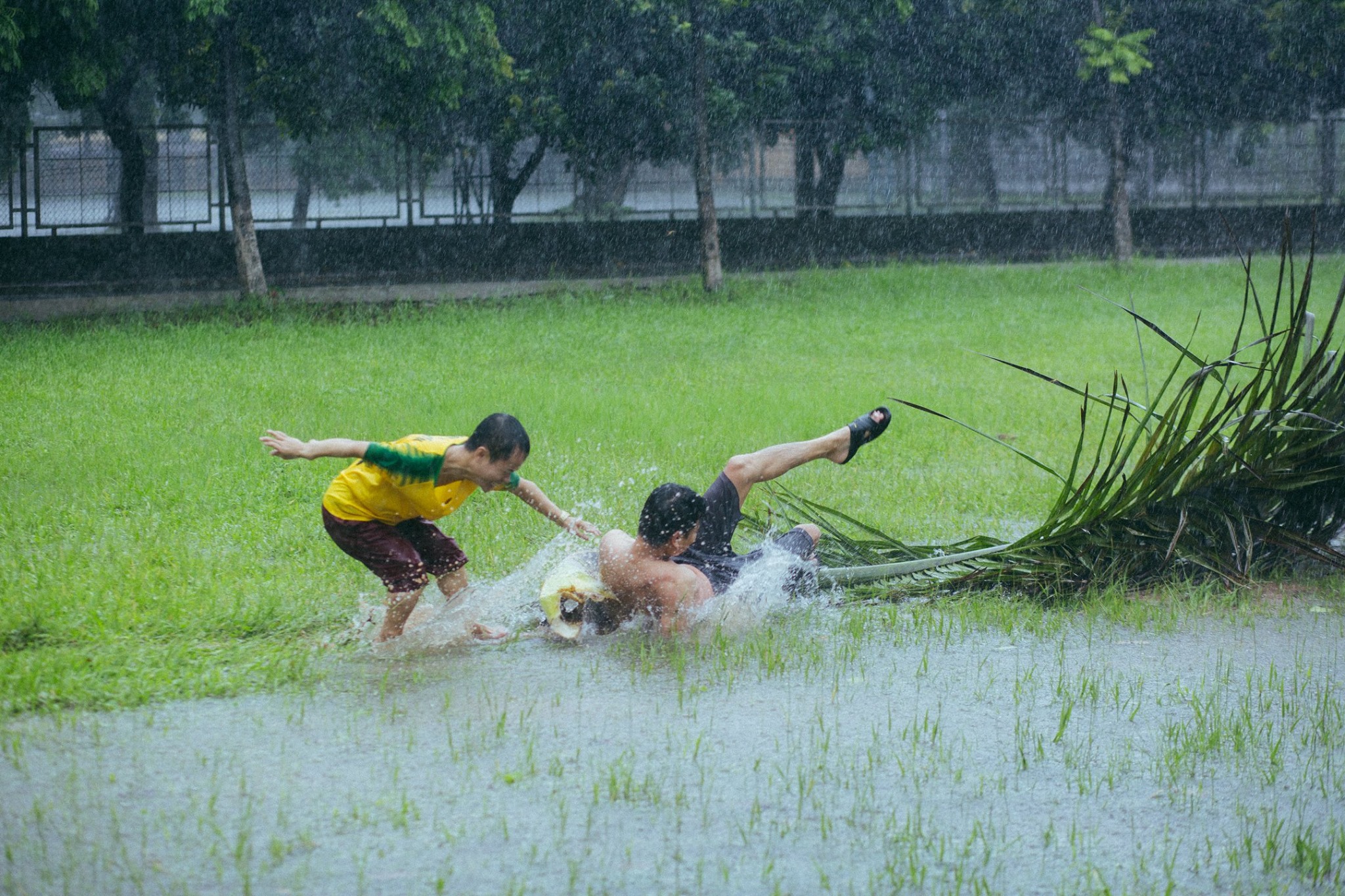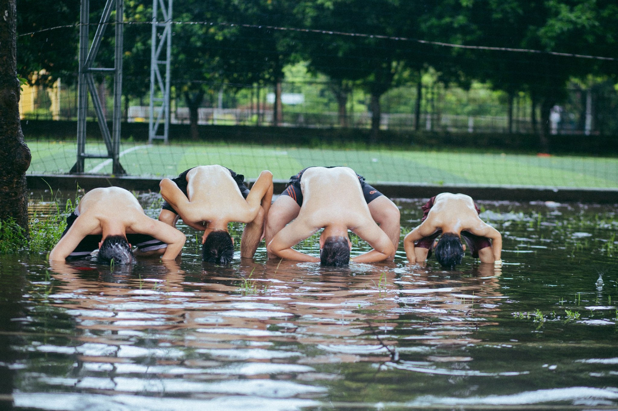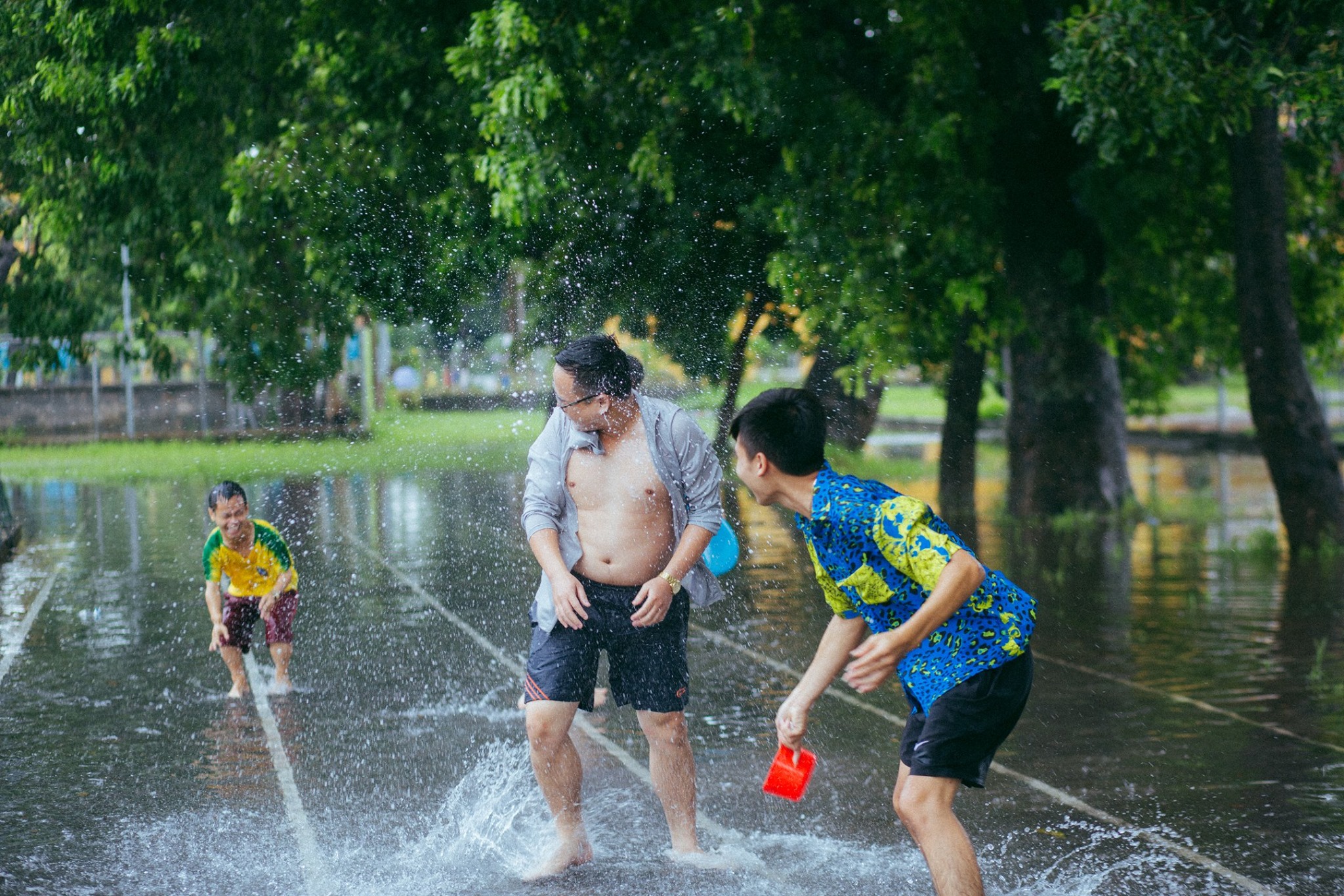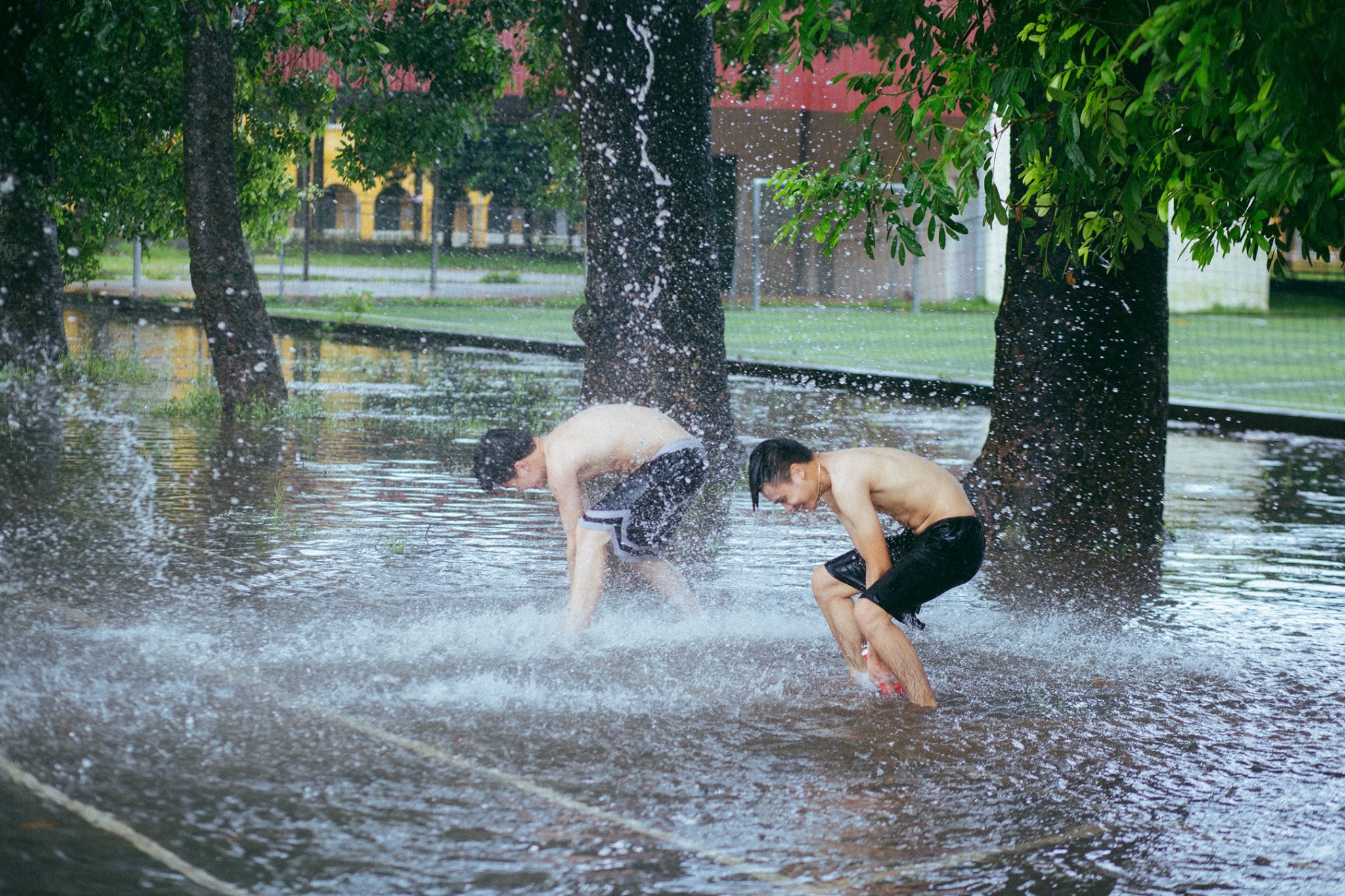 Nhóm bạn thân nảy ra ý tưởng “tắm mưa” giữa tình hình thời tiết bão bùng.