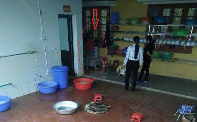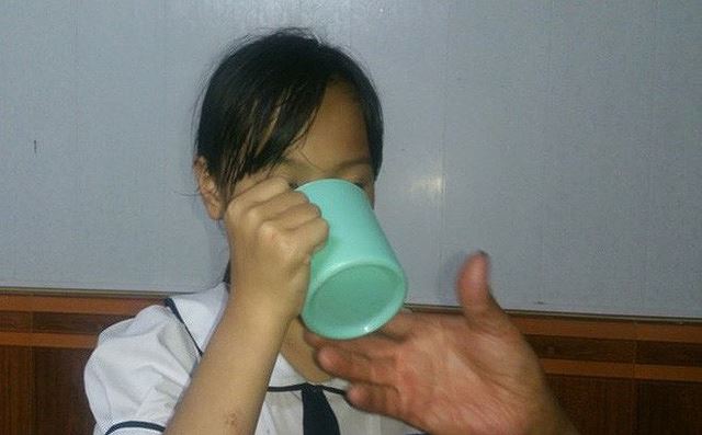 Cho học sinh uống nước giẻ lau bảng. Ảnh: Tiền Phong