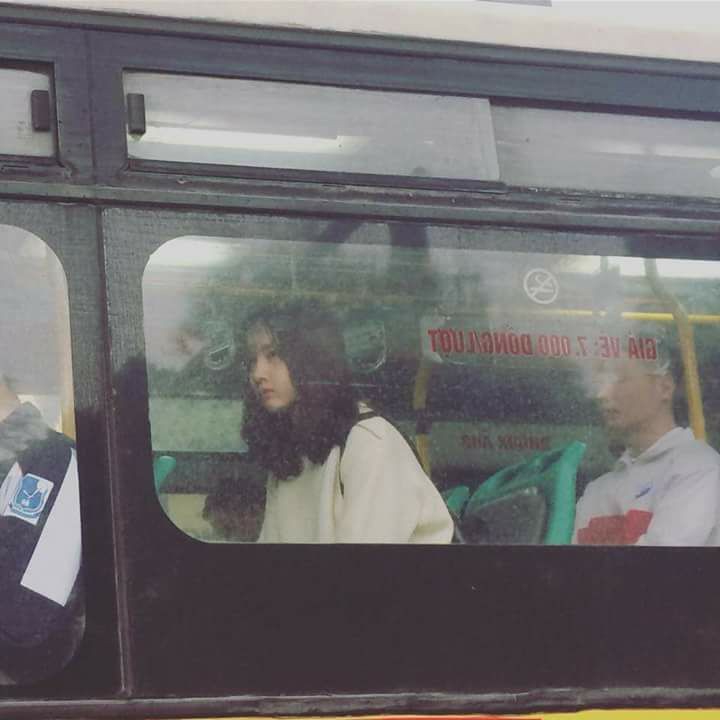 Bức ảnh chụp lén thiếu nữ qua ô cửa xe buýt khiến dân mạng không khỏi trầm trồ. Dù bức ảnh chụp hơi mờ, song mái tóc đen ôm lấy khuôn mặt xinh xắn, nhỏ nhắn và bầu bĩnh của cô bạn thì không hề bị lu mờ.