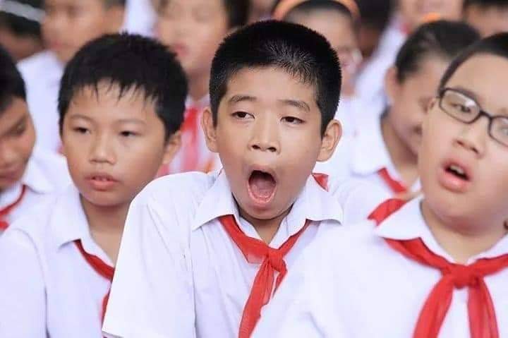 Mới đây, trên mạng xã hội vừa chia sẻ những hình ảnh về buổi lễ tựu trường của các bạn học sinh, vì quá buồn ngủ mà các cô cậu này đã ngáp ngắn ngáp dài khi ngồi dự lễ. Không ngáp sao được khi giờ này hôm qua đang được ngủ nướng cơ mà?