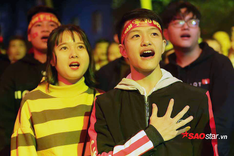 Các sinh viên Đại học Y cùng hát vang Quốc ca cùng hàng triệu con tim yêu bóng đá trên cả nước