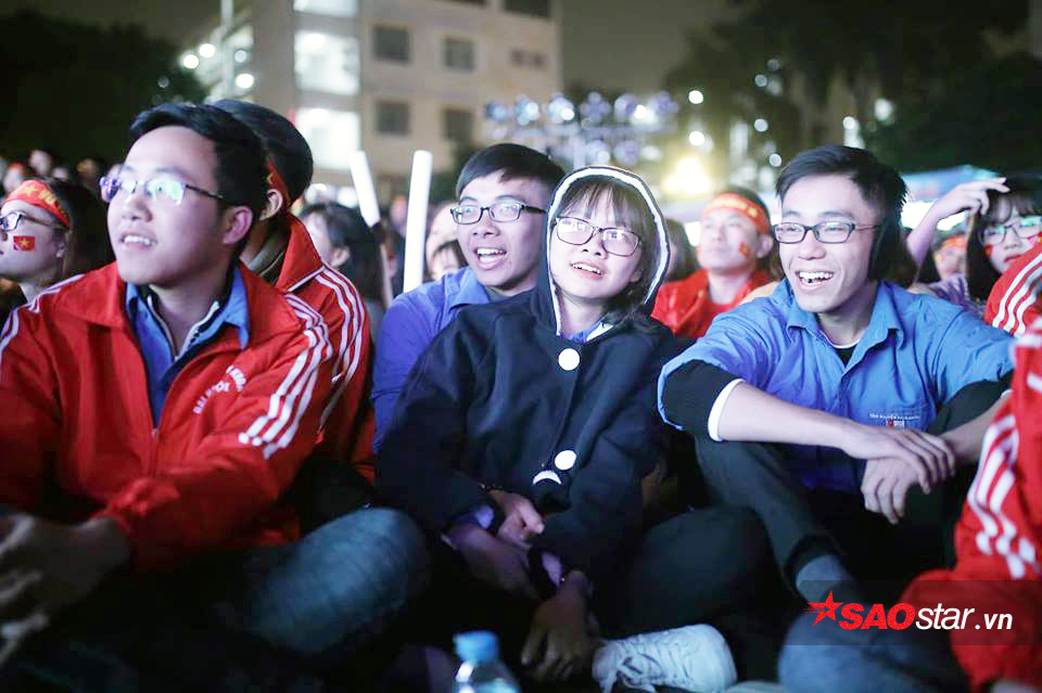 Các sinh viên ĐH Thăng Long hòa chung niềm vui của ngày Kỉ niệm 30 năm thành lập trường với niềm vui của hàng triệu người hâm mộ bóng đá cả nước