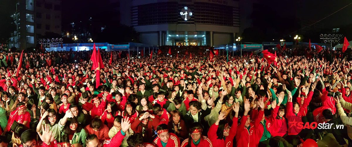 Hàng ngàn sinh viên Đh Bách khoa Hà Nội bật flash, truyền lửa đến các người hùng sân cỏ