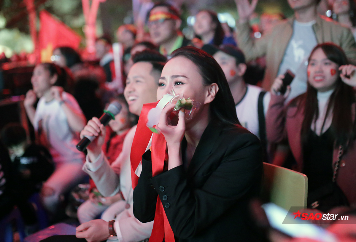 MC khách mời của Đh Thăng Long - diễn viên Phương Oanh không giấu diếm sự cuồng nhiệt với trái bóng tròn
