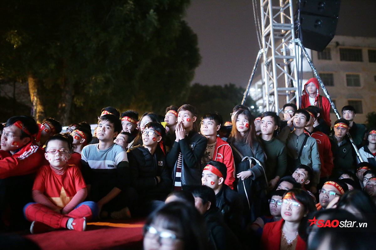Chăm chú dõi theo từng bước chân của các tuyển thủ tại sân vận động Mỹ Đình