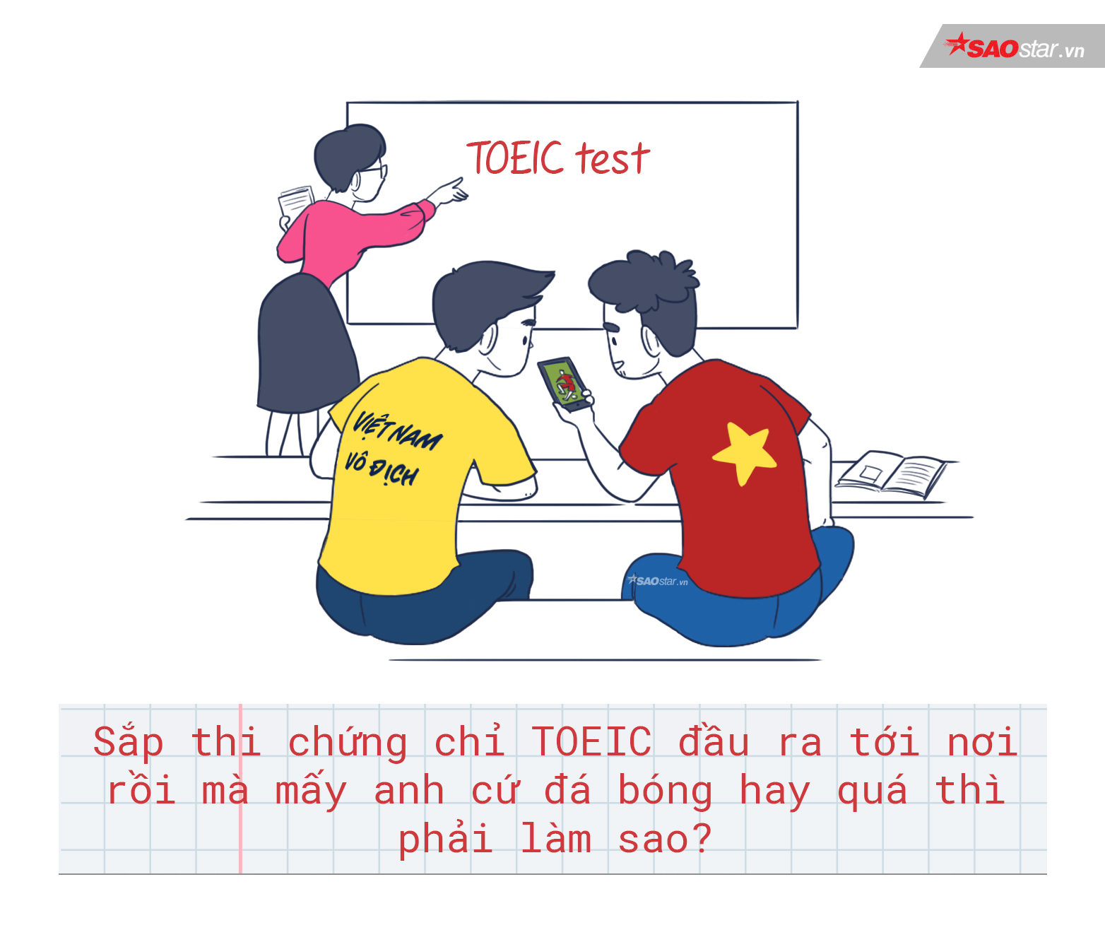 Trước mắt là kỳ thi chứng chỉ TOEIC chuẩn đầu ra đầy áp lực nhưng một khi bạn đã trót đam mê bóng đá thì dù ở bất cứ nơi đâu vẫn hướng về sân cỏ. Tranh thủ một lúc làm 2 nhiệm vụ chính là giải pháp của nhiều bạn trẻ.