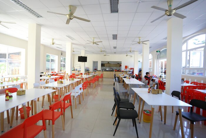 Khu căn tin 3 sao của KTX này khá sạch sẽ và hiện đại.