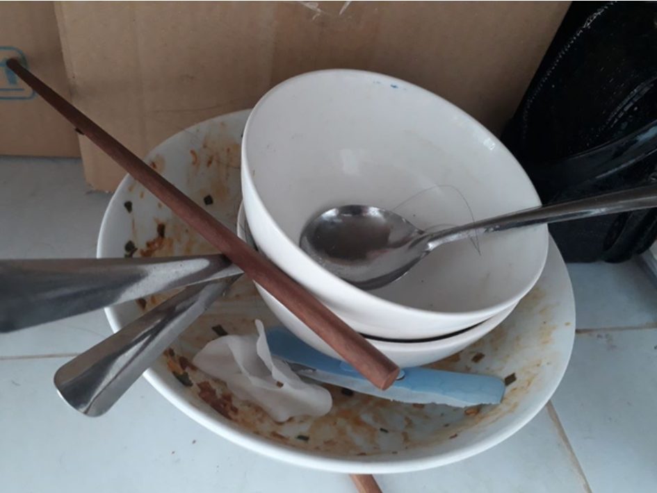 Bát đũa ăn xong và bỏ lại bồn rửa nhiều ngày liền