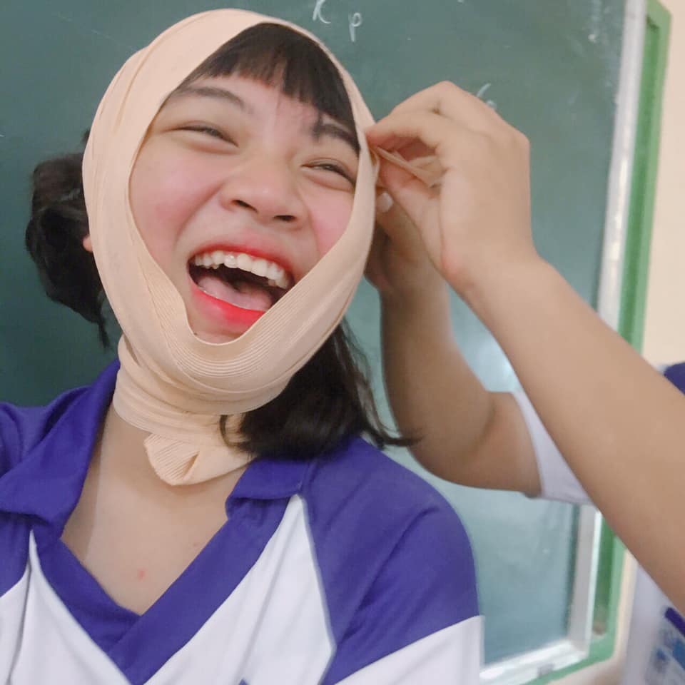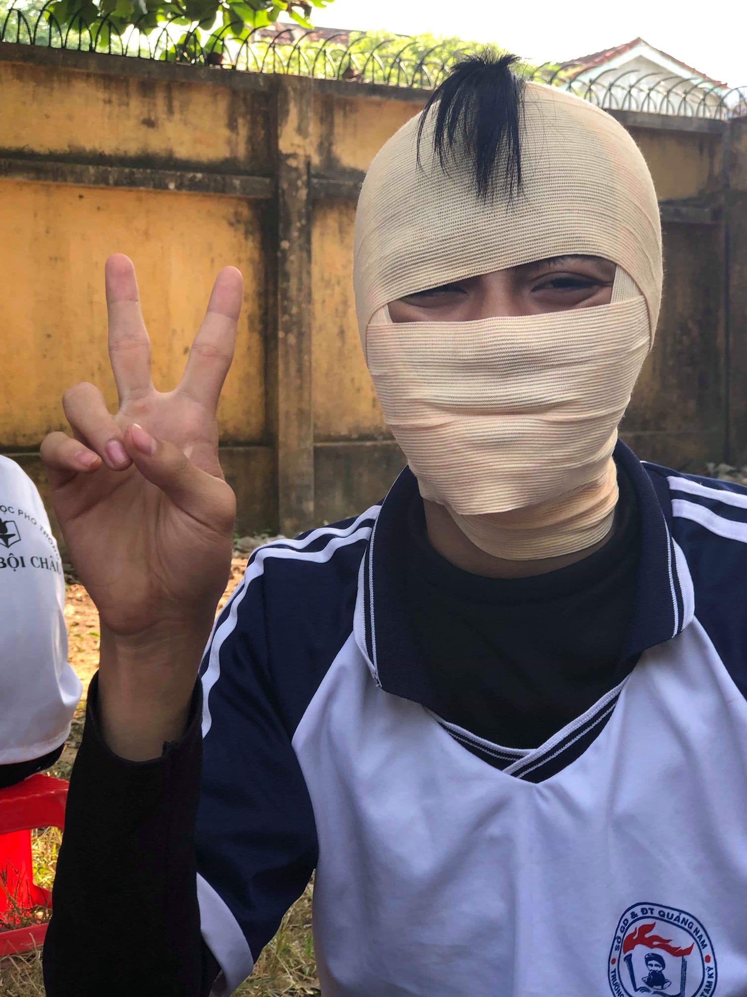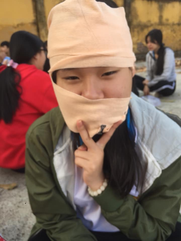 Bên dưới phần bình luận, rất nhiều bạn đã để lại những hình ảnh thú vị trong tiết học thực hành “băng bó vết thương”: