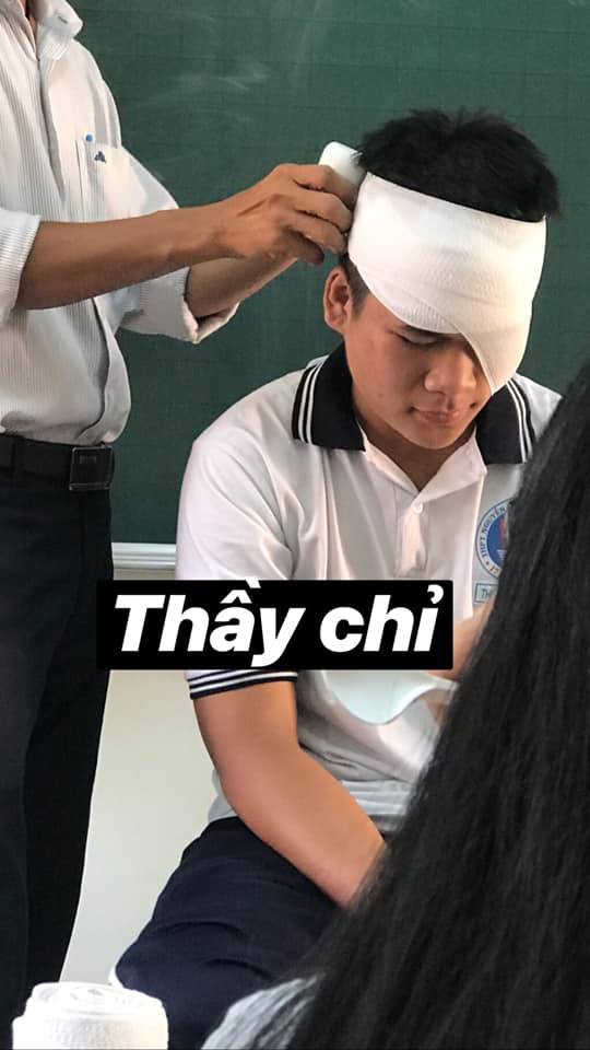 Khi thầy giáo hướng dẫn, kỷ thuật băng bó được thực đúng, vết thương được băng bó gọn gàng…