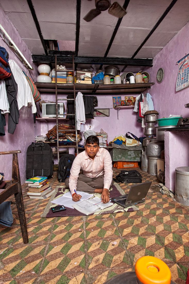 Pankaj, 22 tuổi, là đang học tập ở Mumbai, Ấn Độ. “Tôi muốn và phải trở thành một lãnh đạo hàng đầu trong lĩnh vực kinh doanh ở Ấn Độ trước năm 2030″, cậu sinh viên 22 tuổi bày tỏ ước mơ. Căn phòng của Pankaj tuy có nhiều đồ đạc nhưng vẫn khá ngăn nắp. Ảnh: Henny Boogert