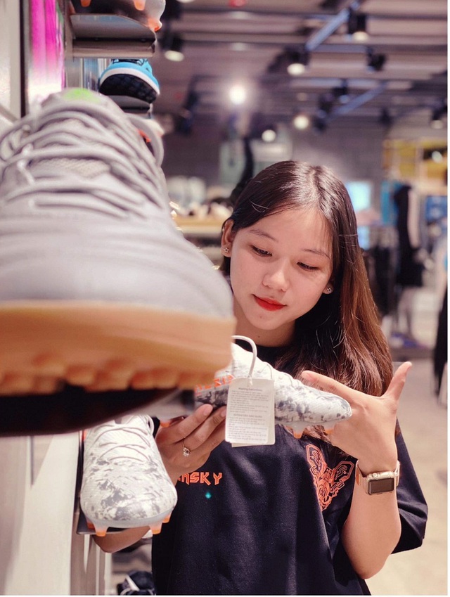 Là một fan girl bóng đá xinh đẹp, thế nhưng không khó để bắt gặp hình ảnh cô bạn khoác lên mình bộ trang phục quần đùi áo số, chân đi giày đinh để thỏa niềm đam mê của bản thân. Trên trang Facebook cá nhân, nữ sinh này cũng chia sẻ những hình ảnh mà mình chụp chung với các cầu thủ nổi tiếng như Quang Hải, Đình Trọng, Tiến Linh,…