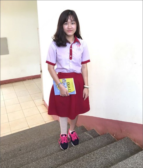 Hà Vi thời điểm còn học phổ thông, dù đi lại bằng chiếc chân giả nhưng em luôn cố gắng