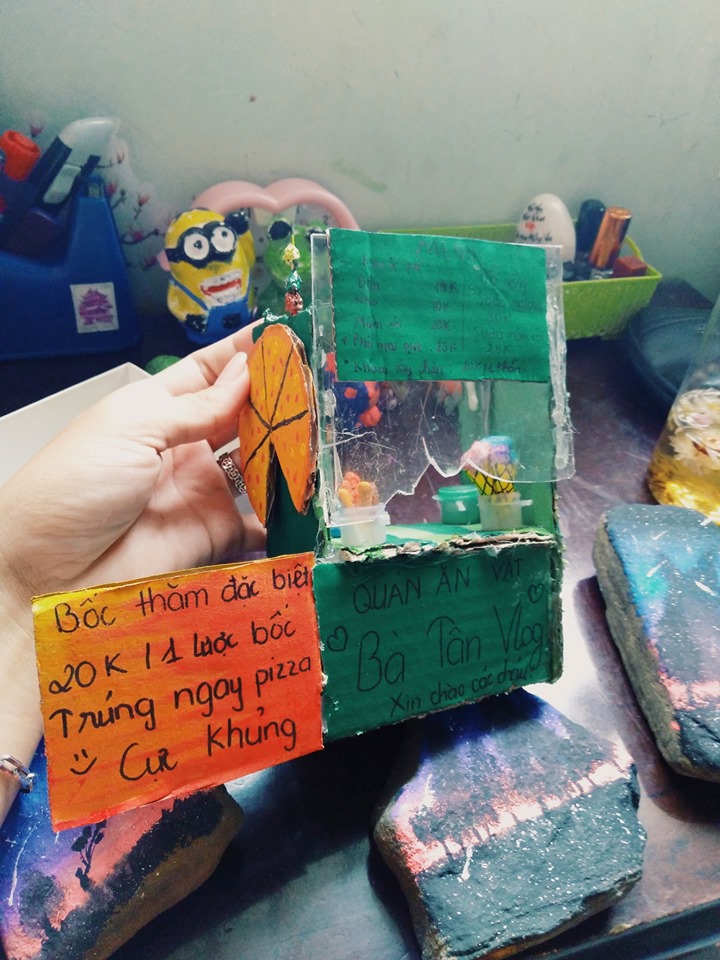 Cô em gái này còn sáng chế ra cả thùng bốc thăm “siêu to, siêu khổng lồ”. Chắc hẳn cô em gái này cũng là một fan trung thành của Bà Tân Vlog