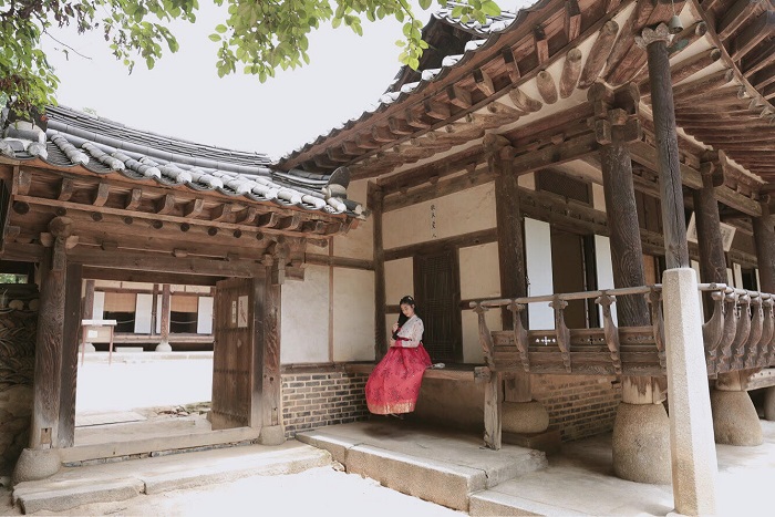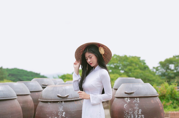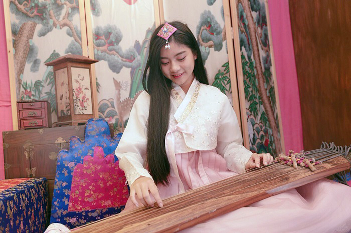 Trong trang phục han-bok truyền thống của đất nước Hàn Quốc, Nam Phương rất xinh đẹp, đằm thắm