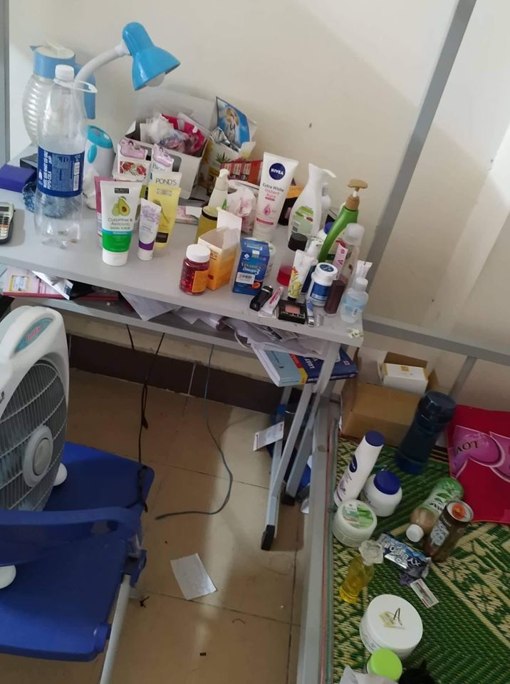 Trên bàn của nữ sinh này chứa rất nhiều mỹ phẩm hàng hiệu đắt tiền