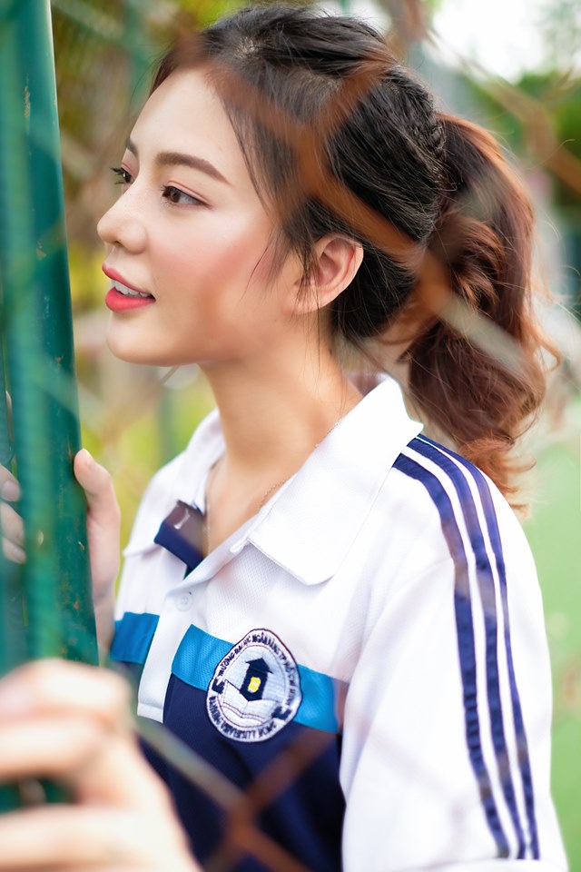 Mặt khác, nữ sinh này cũng chia sẻ thêm: “Mình thấy đồng phục thể dục của trường mình rất xinh, lại còn năng động và cá tính, nó cho thấy được sự mộc mạc chân thật của mỗi bạn sinh viên. Hơn thế nữa cảm giác khi mình khoác bộ đồng phục này lên người trông rất khỏe khoắn, đó là lý do mà mình muốn thực hiện bộ ảnh với trang phục này”.