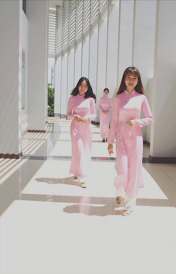 Với tà áo màu hồng phấn nhẹ nhàng, vừa tôn lên sự tươi trẻ vừa khiến các nữ sinh dịu dàng hơn bao giờ hết.
