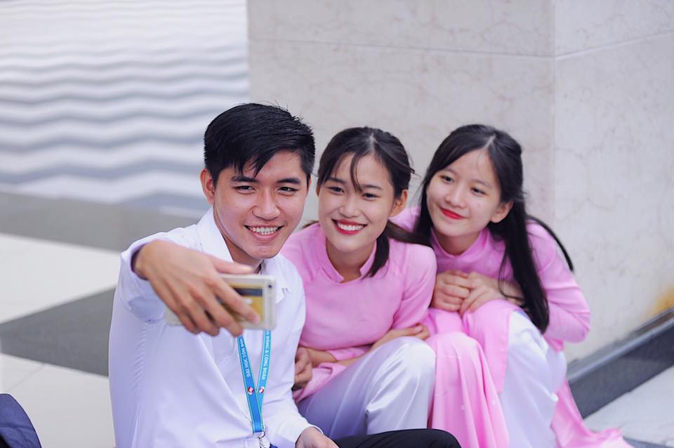 Cùng lưu lại những bức ảnh đẹp với trang phục riêng biệt của ngôi trường đang theo học.