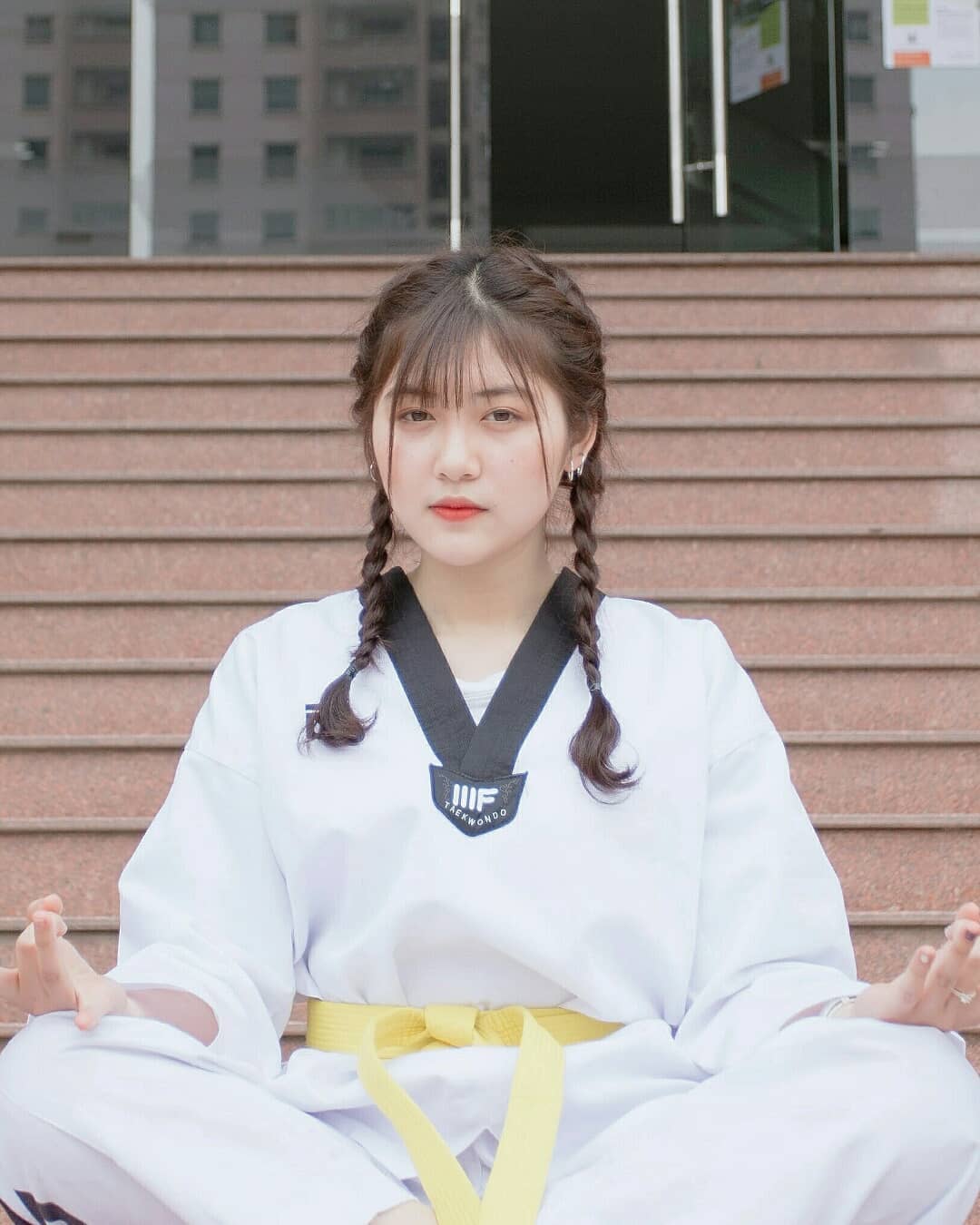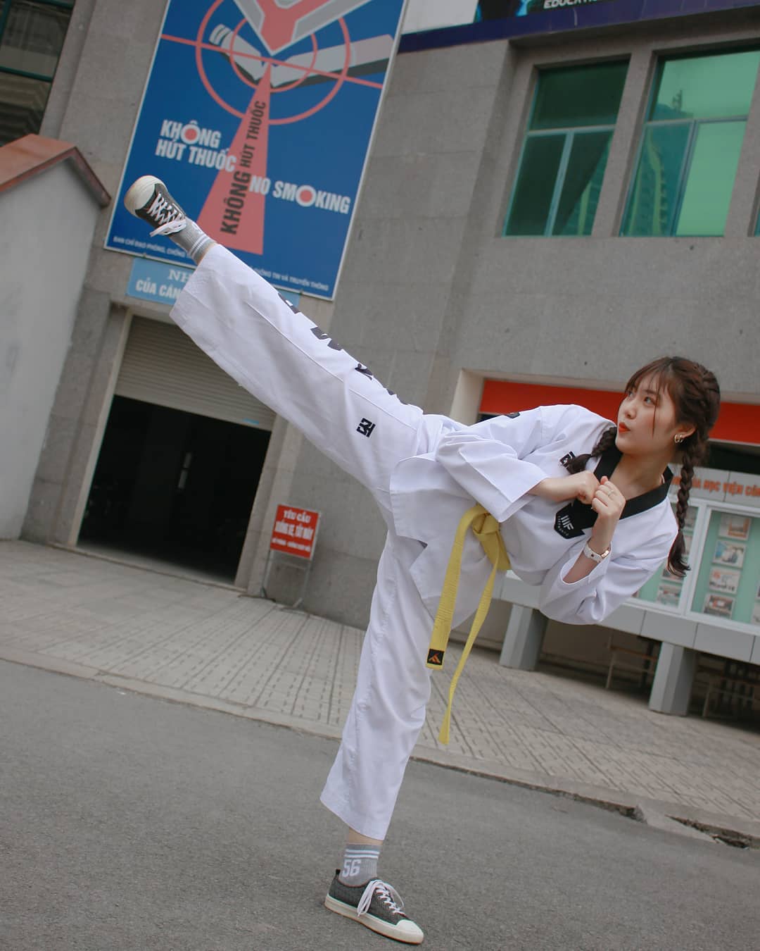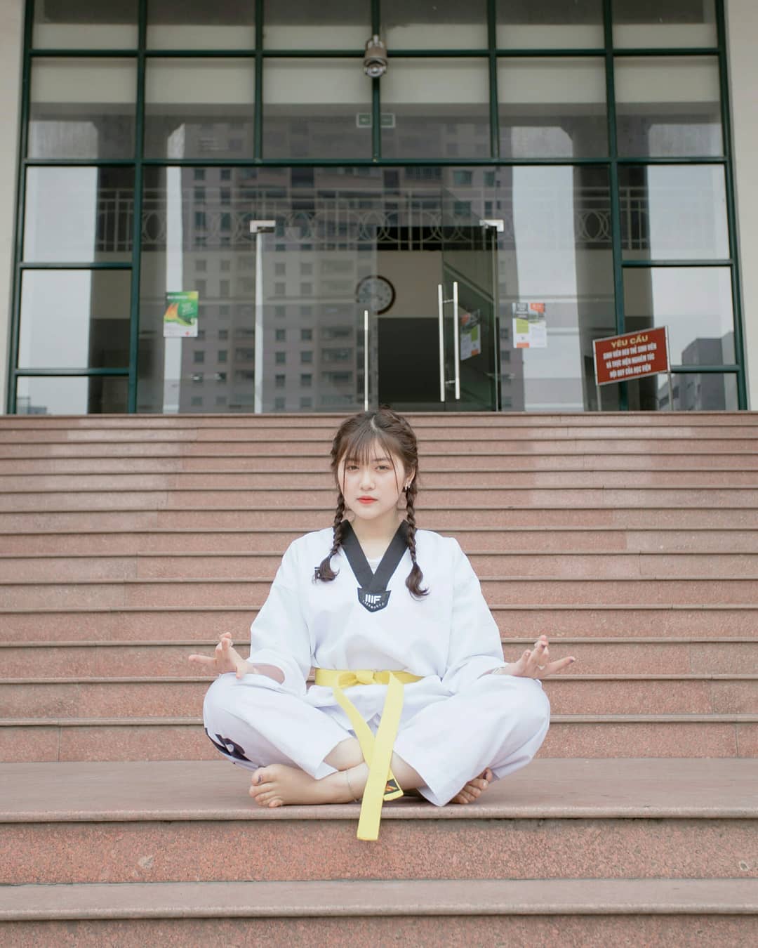 Ở nữ sinh Học viện Bưu chính Viễn thông có nét đẹp hài hòa giữa sự dịu dàng, mềm mỏng và sự mạnh mẽ, cá tính, dẻo dai của người đã tập võ thuật lâu năm.