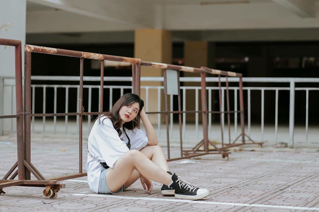 Ngoài đời, nữ sinh thường chọn phong cách thời trang năng động, cá tính với áo phông, quần short jean.