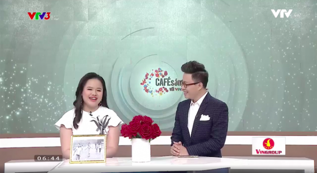 Hình ảnh nữ sinh - MC khiếm thị trong chương trình “Cà phê sáng của VTV3”.