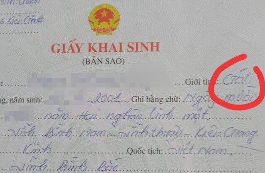 Sau khi thông tin vụ việc được chia sẻ trên các trang MXH, ngoài phần giới tính, nhiều người còn tinh ý phát hiện ra một lỗi sai khác trong tờ giấy khai sinh của em Q. Cụ thể, tại phần ghi ngày tháng năm sinh bằng chữ, chữ “ngàn” trong năm 2001 đã bị viết sai chính tả thàn “nghành”.