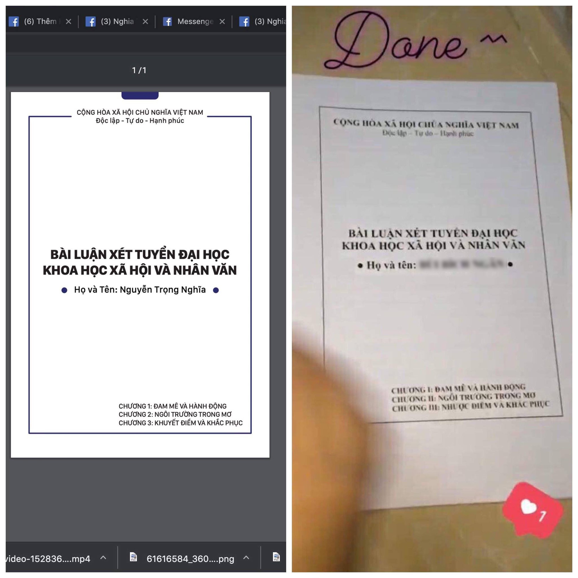 Theo lời của Trọng Nghĩa, bài luận của nữ sinh này giống bài luận của anh đến 90%, từ bìa, tiêu đề đến nội dung bên trong.