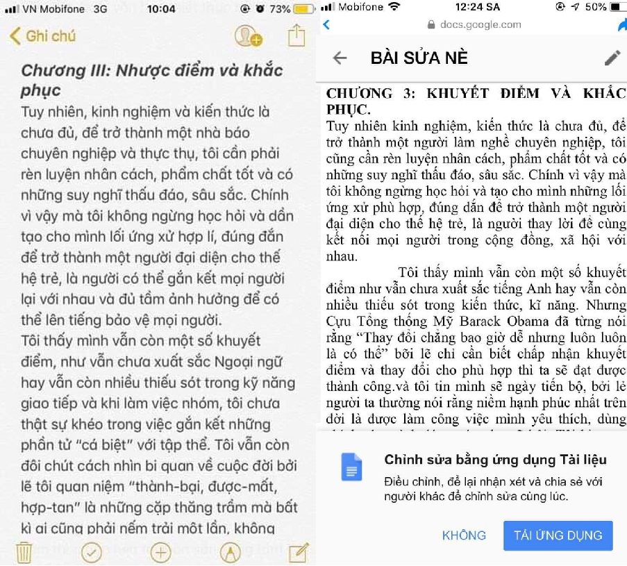 Bản của Nghĩa là bản viết tay, còn của N. là bản đánh máy, tuy nhiên, nội dung 2 bản lại gần như giống nhau.