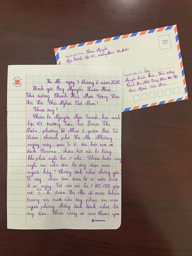 Vì vậy, cháu đem toàn bộ số tiền được lì xì ngày Tết vừa rồi là 3.180.000đ góp với Thành đoàn Hà Nội để mua khẩu trang và nước rửa tay phục vụ mọi người phòng chống dịch bệnh như lời ông dặn.