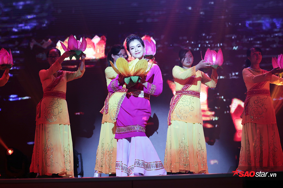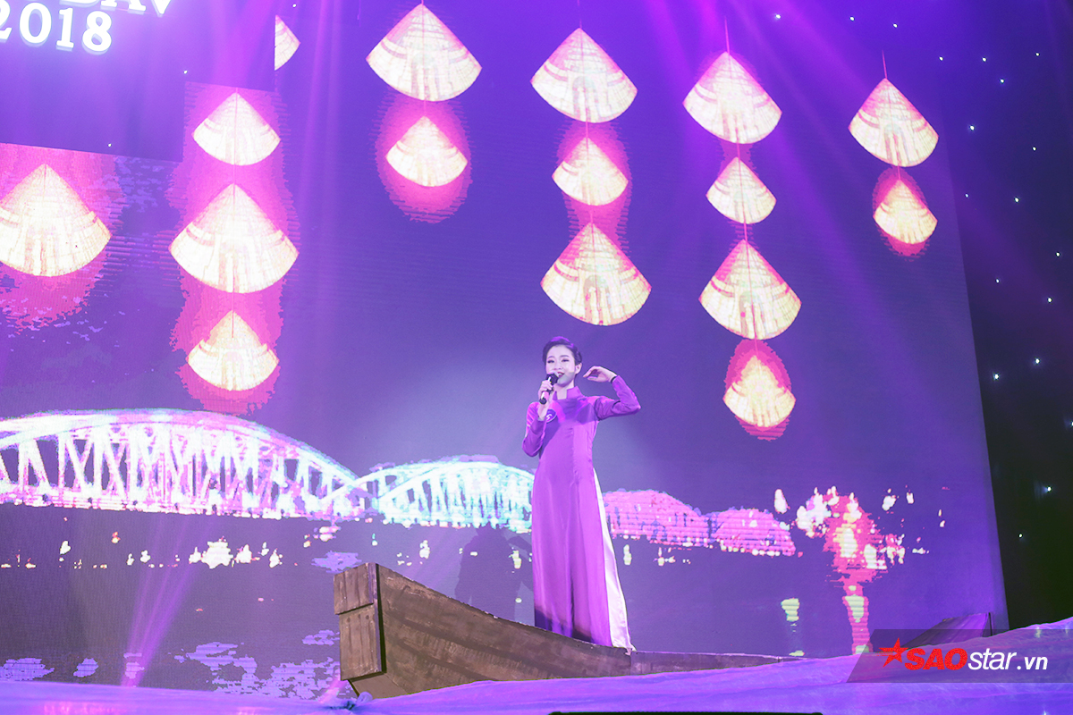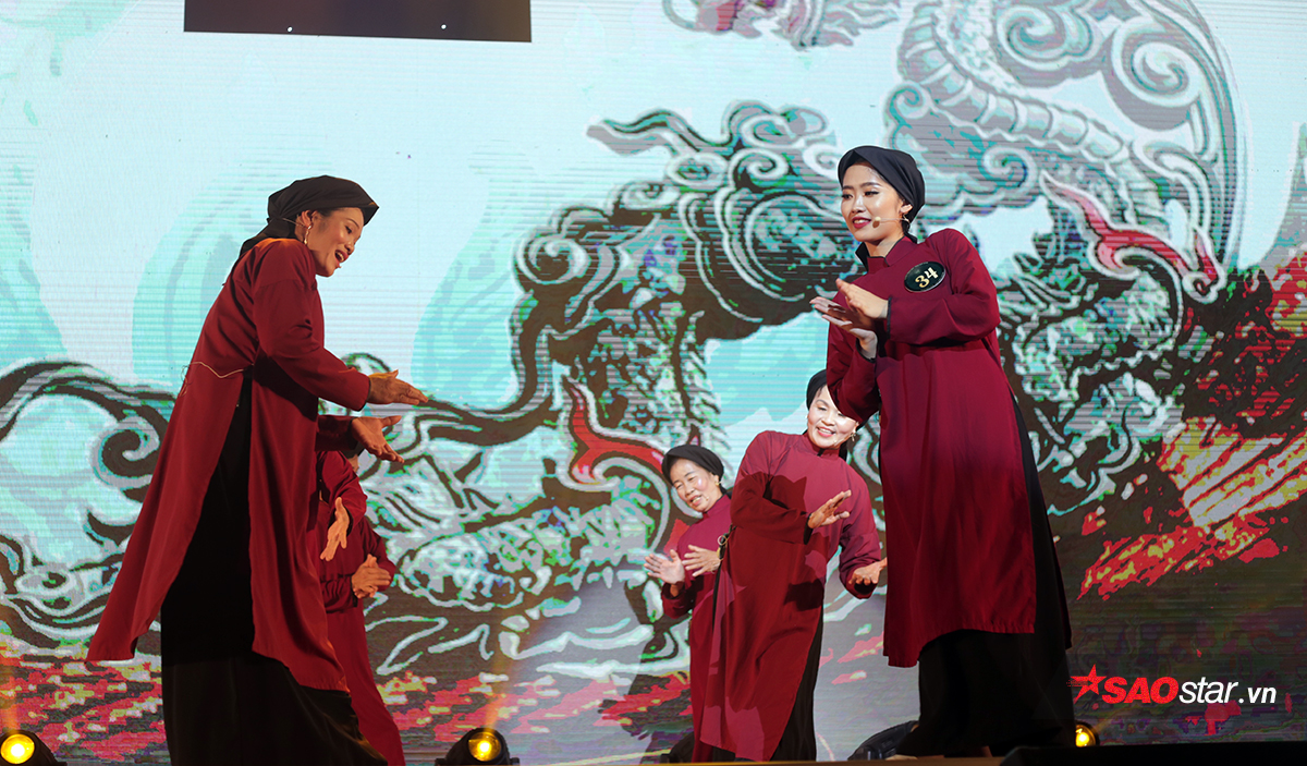 Điệu hát xoan cổ truyền của vùng đất Phú Thọ được Trần Huyền Trang hòa giọng cùng các cô, các chị, mang đến một sân khấu độc đáo cho đêm chung kết.