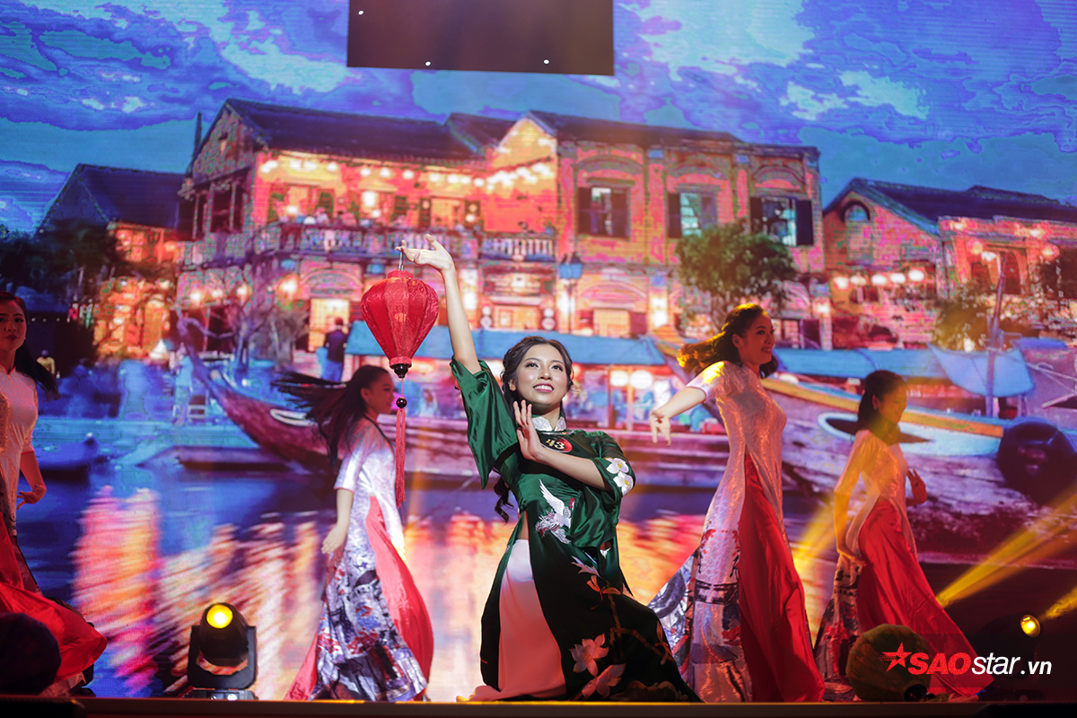 Thí sinh được yêu thích nhất Uông Hà Ngân tái hiện những hình ảnh của đêm hội hoa đăng tại phố cổ Hội An - Quảng Nam.