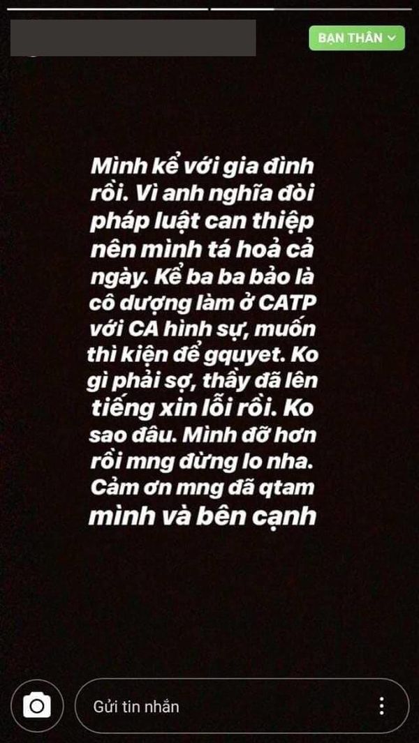 Sau sự việc nói trên, nữ sinh B.B.N tiếp tục bị một nhóm học sinh trường X. đăng tải những hình ảnh tố cáo nữ sinh này không biết hối lỗi, đăng status trên story để biện minh cho hành động của mình, trách móc những người bạn thân, thách thức nam sinh ĐH Khoa học xã hội & Nhân Văn TP.HCM mời công an vào cuộc làm việc…