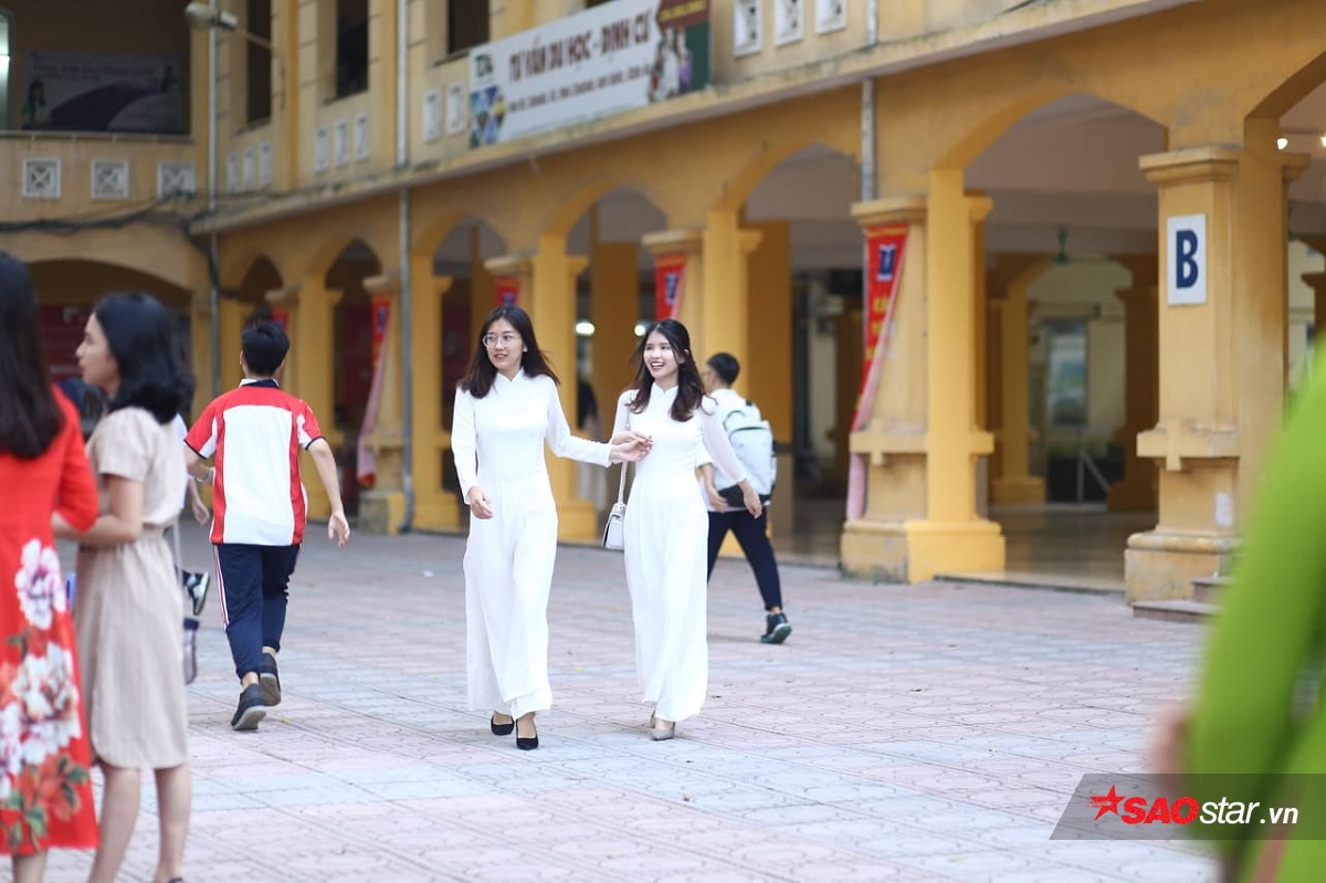 Xuất hiện với tà áo dài trắng, nữ sinh nào trông cũng duyên dáng, dễ thương.