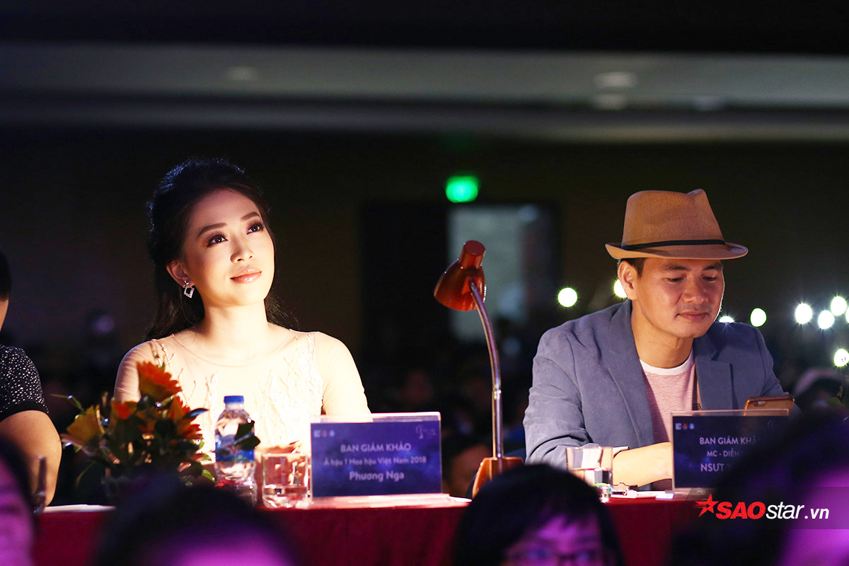 Á hậu Phương Nga chăm chú theo dõi phần thi của các nữ sinh ĐH Xây dựng.