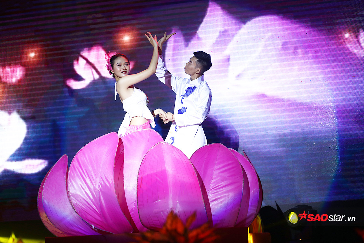 Hoa sen là biểu tượng của sự thuần khiết, tinh khôi - tượng trưng cho nét đẹp của người con gái Việt. Bằng sự khéo léo, duyên dáng của mình, Dương Thị Trà My đã tạo nên hình ảnh bông sen trên chính sân khấu trong điệu nhạc du dương, thu hút toàn bộ sự chú ý của khán giả.
