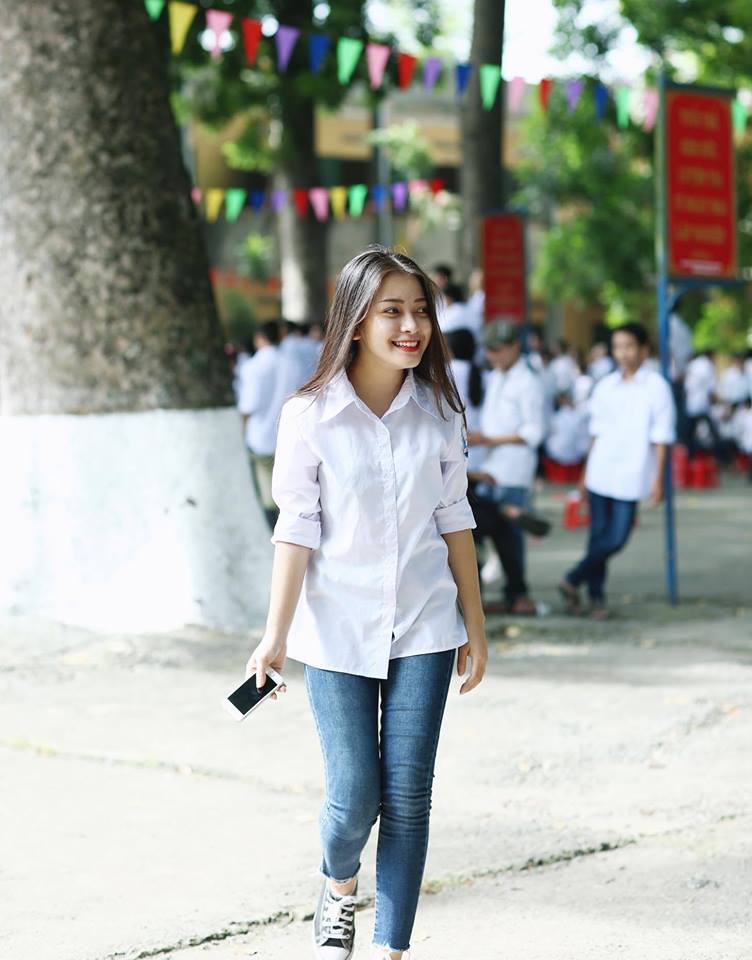 Nét nhí nhảnh của nữ sinh xinh đẹp.