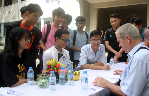 Sinh viên Đại học Bách khoa TP HCM tìm hiểu cơ hội nghề nghiệp với các doanh nghiệp nước ngoài. Ảnh: Mạnh Tùng.