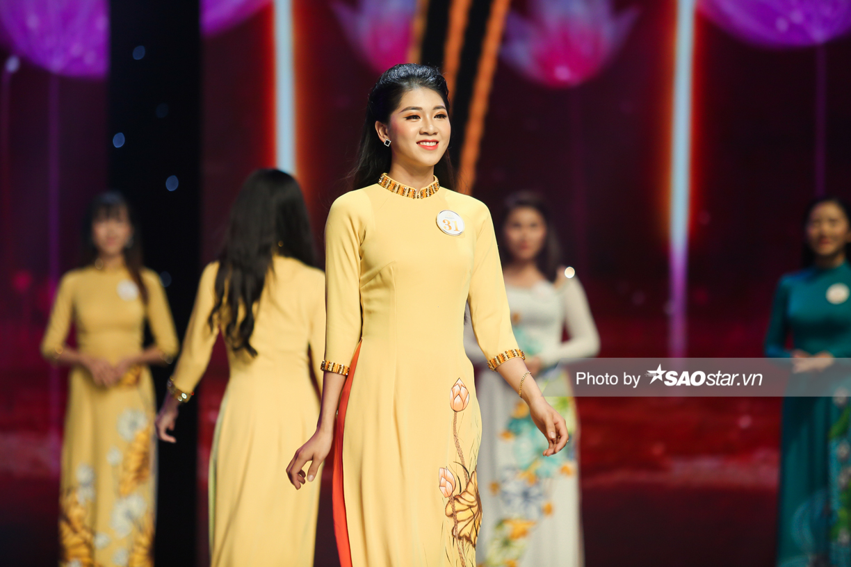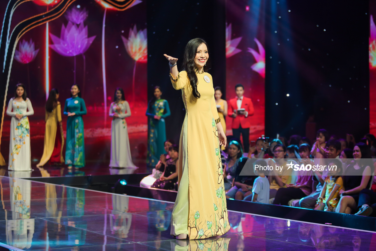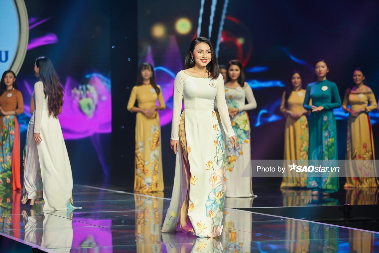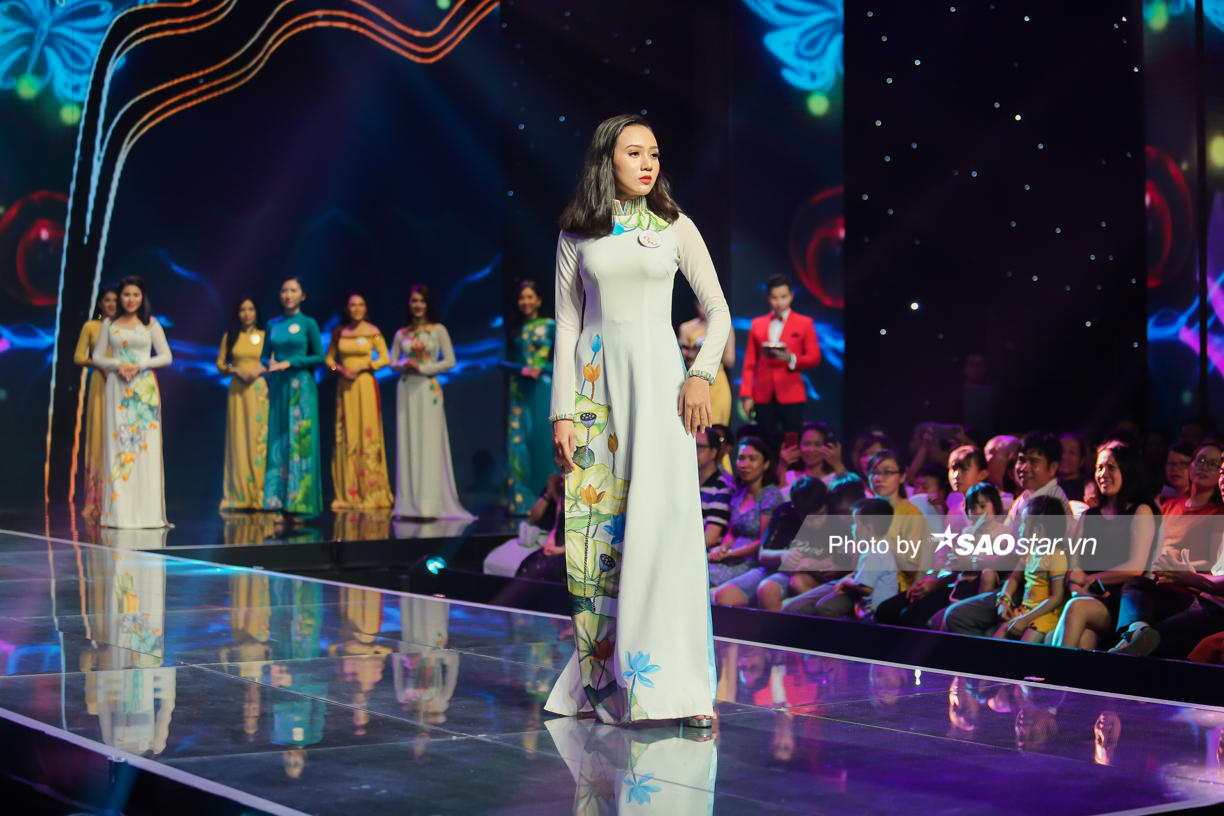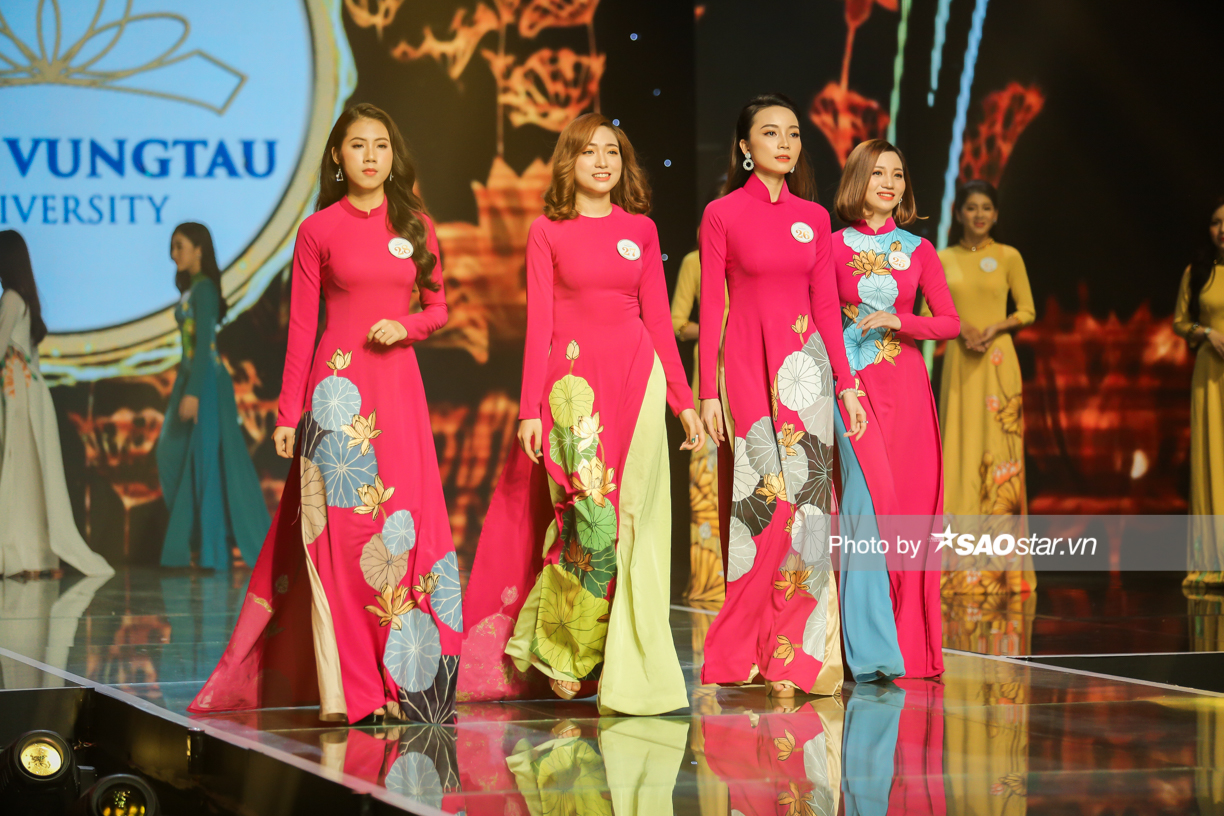 Trong phần thi đầu tiên - trình diễn trang phục áo dài, 20 thí sinh của Trường Đại học Bà Rịa - Vũng Tàu gây bất ngờ với ban giám khảo bởi nét duyên dáng cùng những bước catwalk uyển chuyển, chuyên nghiệp của mình.