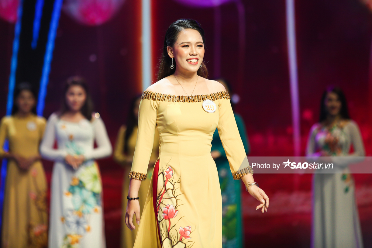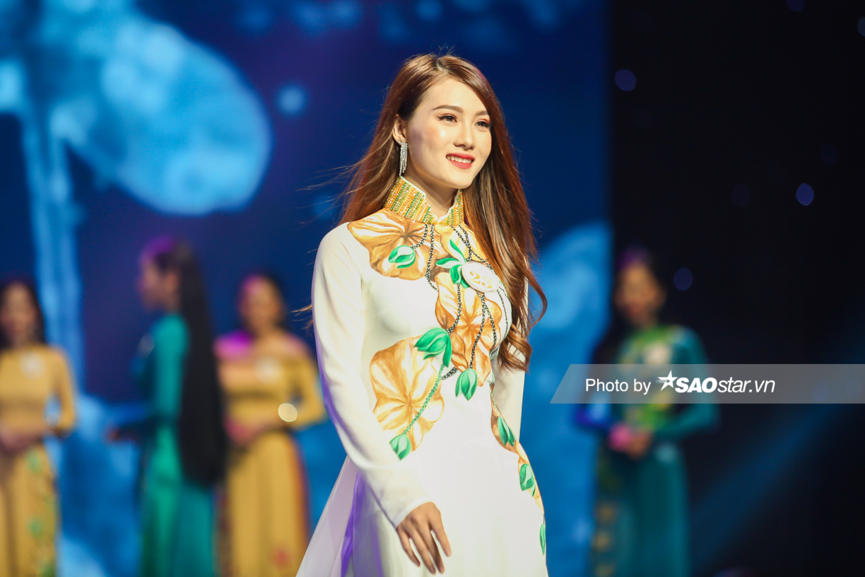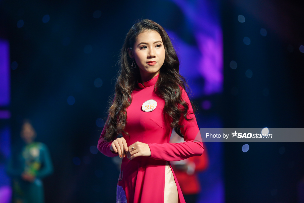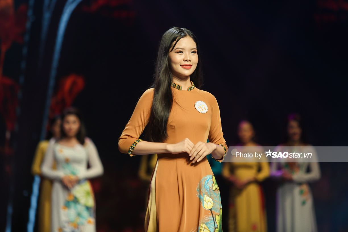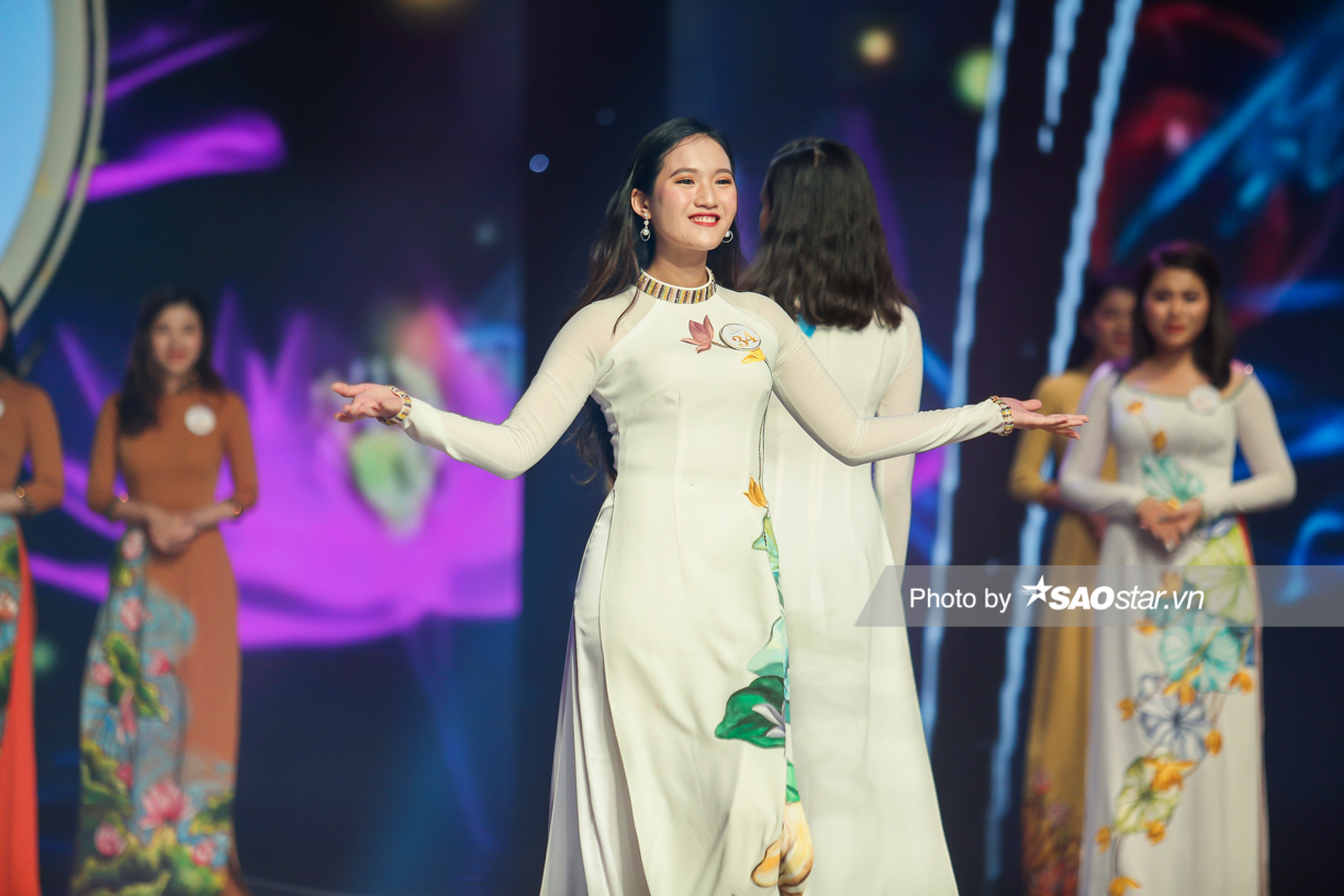 Trong phần thi đầu tiên - trình diễn trang phục áo dài, 20 thí sinh của Trường Đại học Bà Rịa - Vũng Tàu gây bất ngờ với ban giám khảo bởi nét duyên dáng cùng những bước catwalk uyển chuyển, chuyên nghiệp của mình.