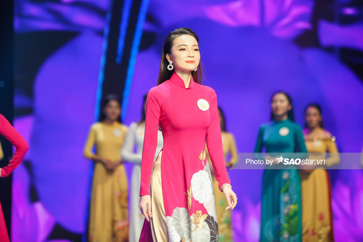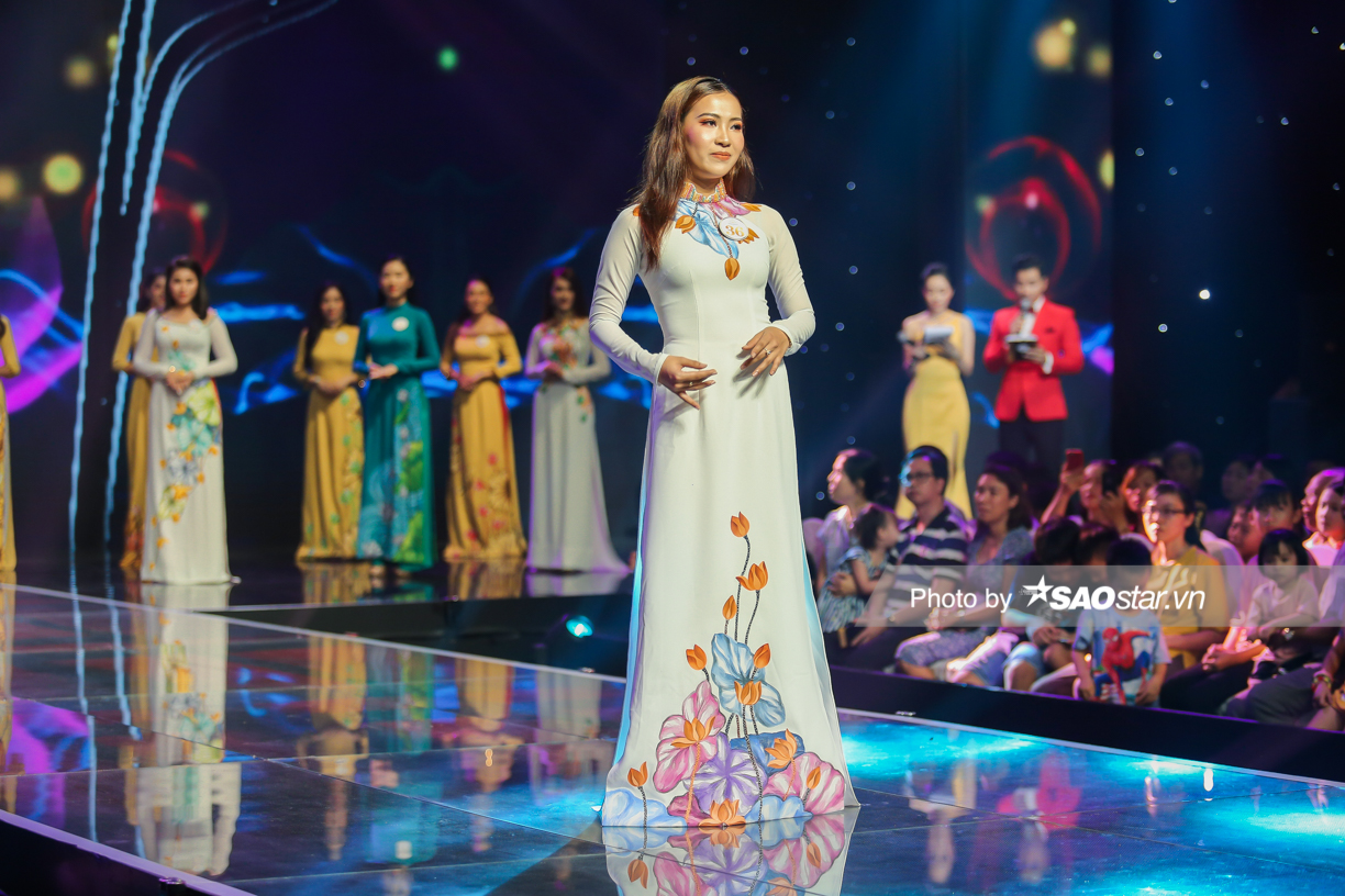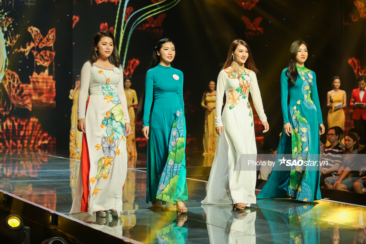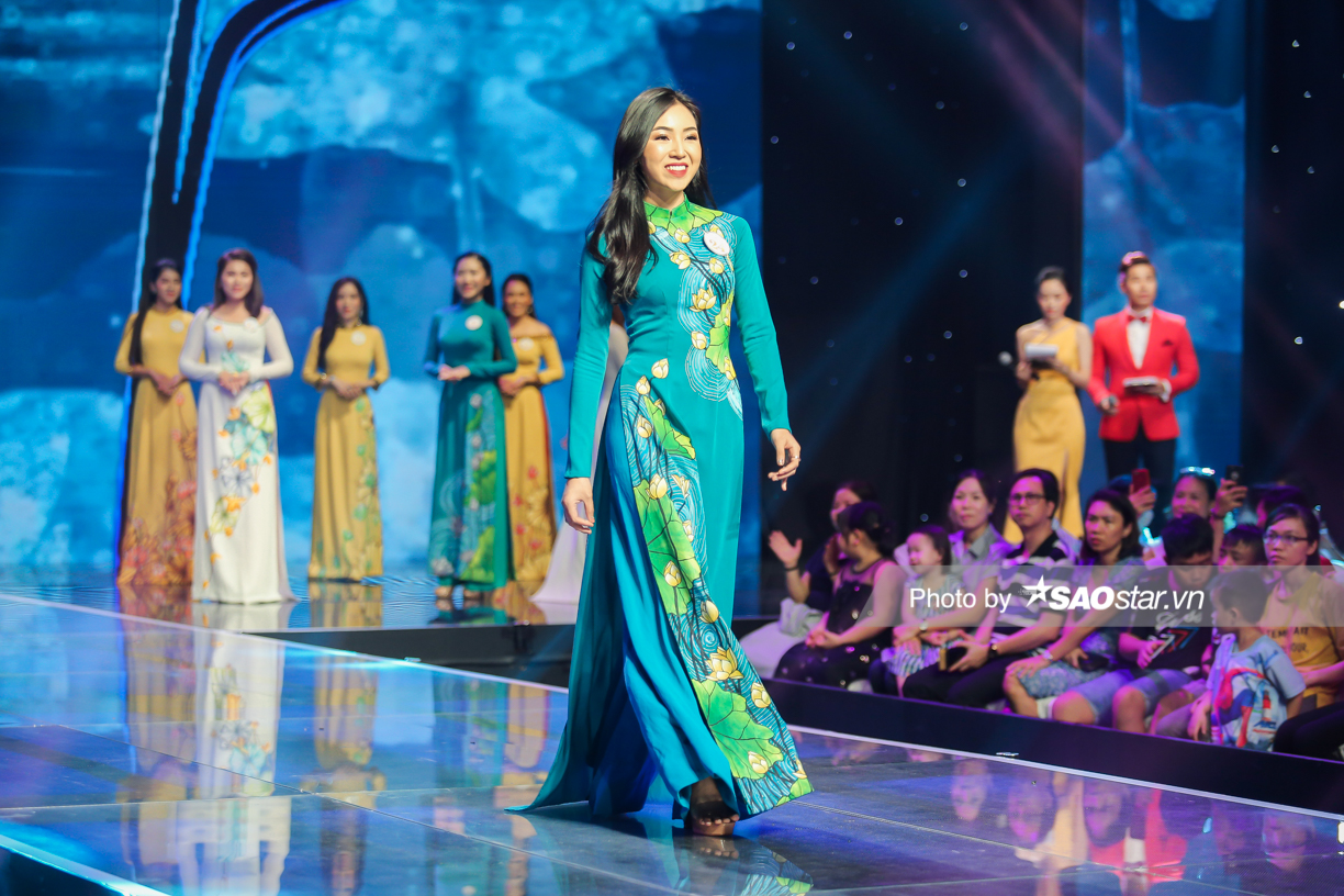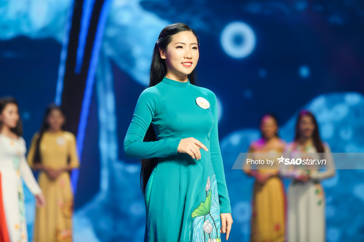 Trong phần thi đầu tiên - trình diễn trang phục áo dài, 20 thí sinh của Trường Đại học Bà Rịa - Vũng Tàu gây bất ngờ với ban giám khảo bởi nét duyên dáng cùng những bước catwalk uyển chuyển, chuyên nghiệp của mình.