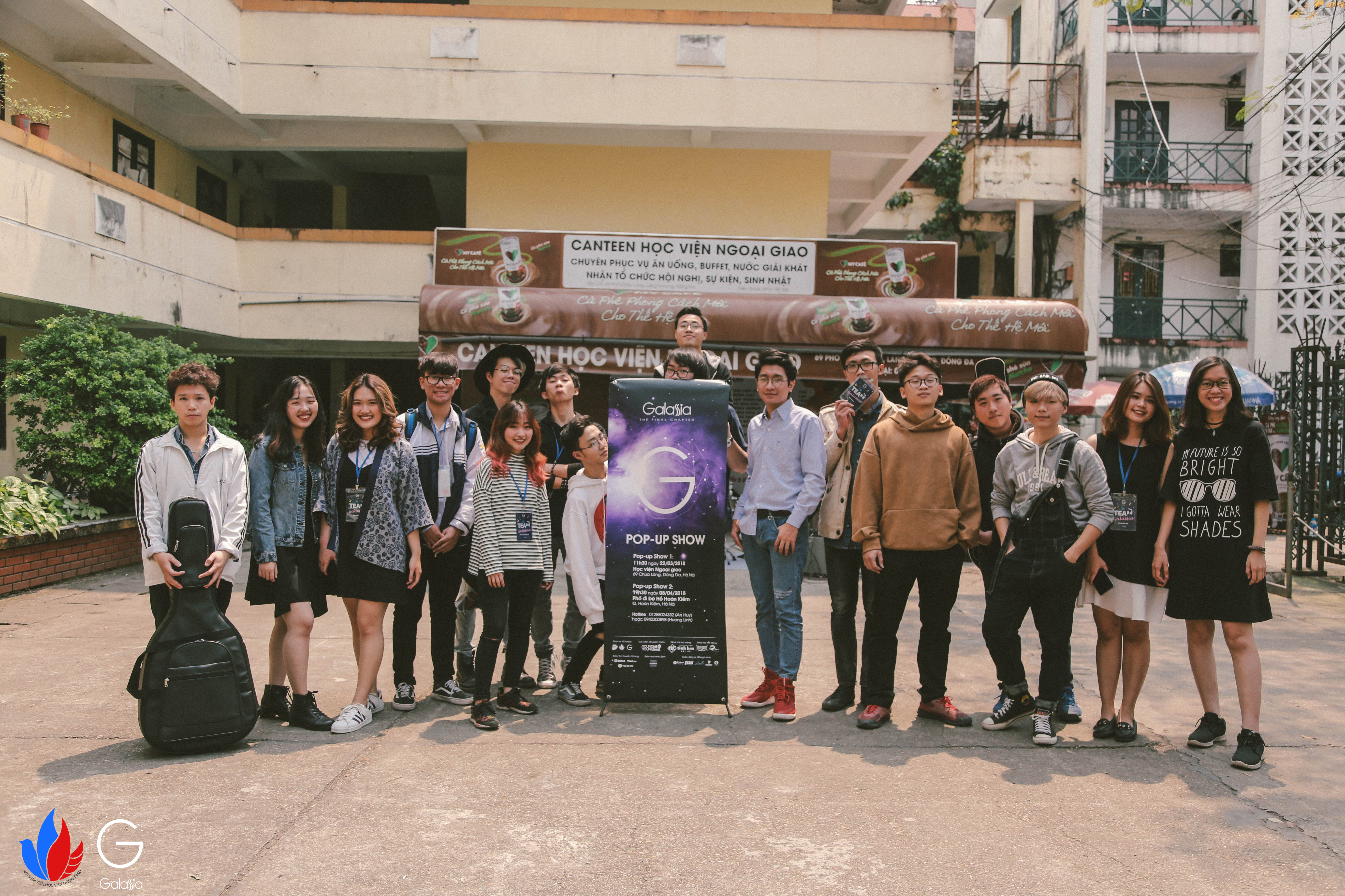 Ngày 22/3/2018, tại sân kí túc xá Học viện Ngoại giao đã diễn ra buổi Pop-up show mở màn cho chuỗi sự kiện Đại nhạc hội Galassia. Lấy ý tưởng từ những tiết mục âm nhạc đường phố, chương trình là sự kết hợp, hòa quyện vẹn nguyên của cái chất mộc mạc, cá tính mà vô cùng gần gũi.