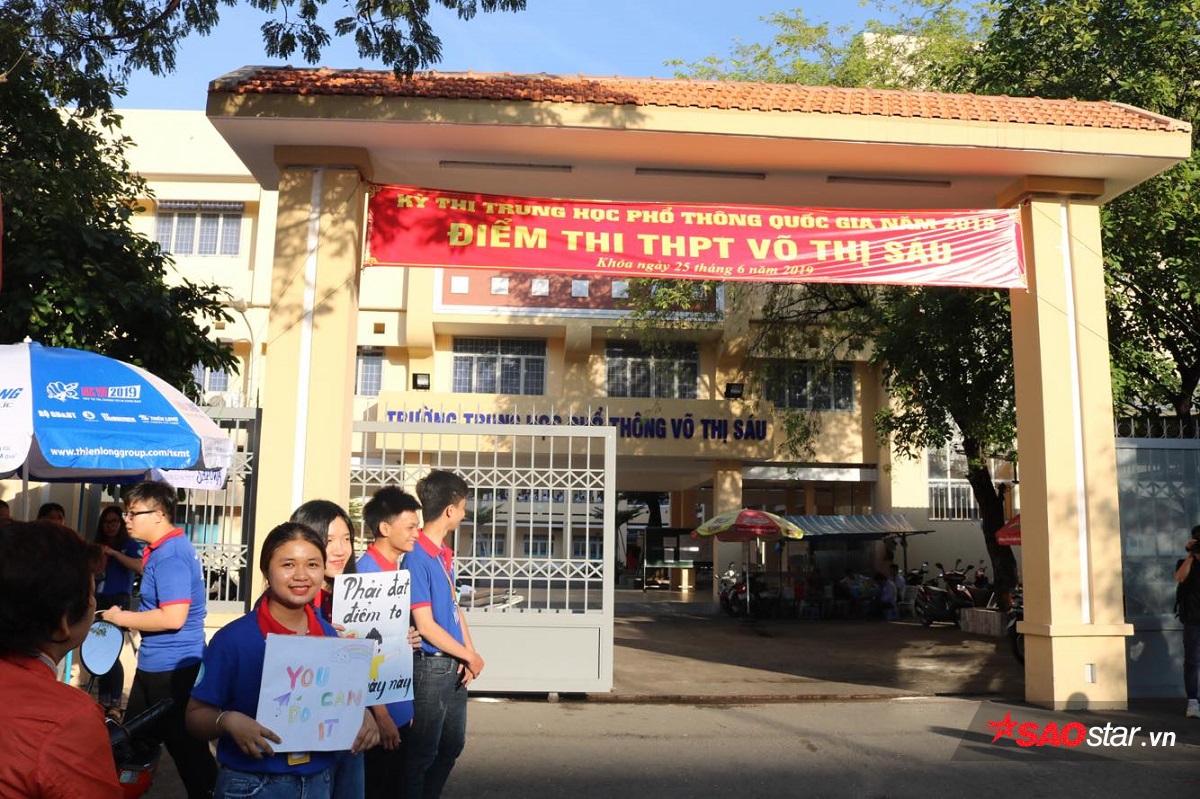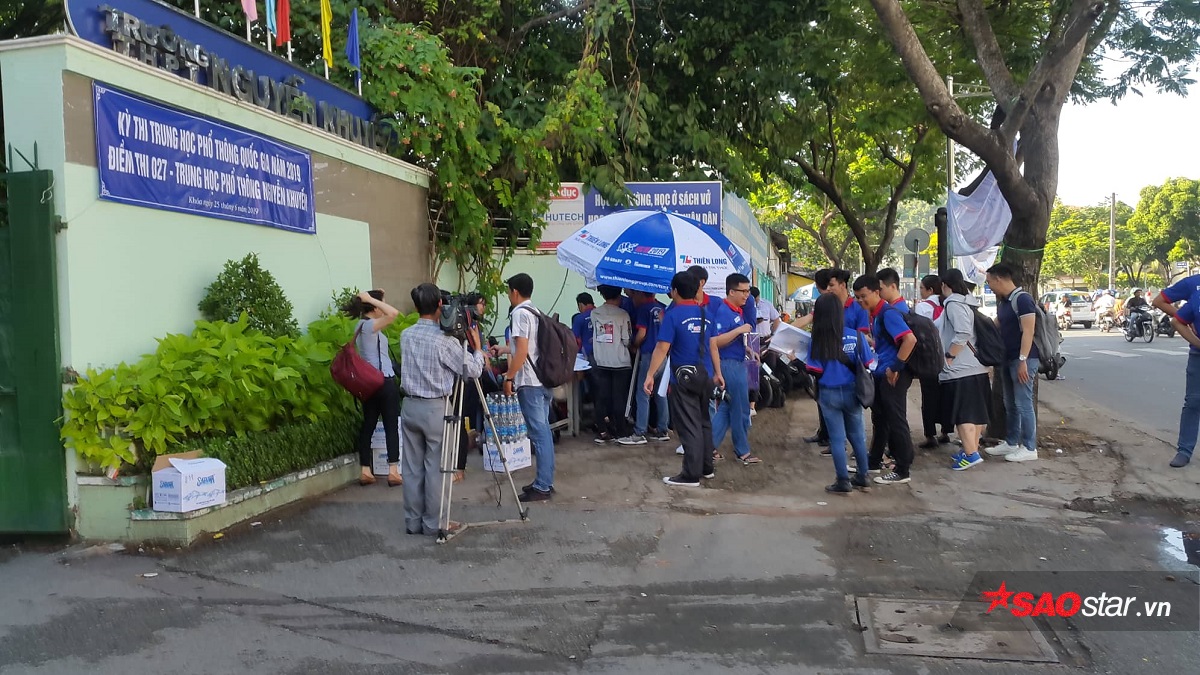 Đội tình nguyện viên có mặt tại điểm thi từ sớm để hỗ trợ các thí sinh và phụ huynh.