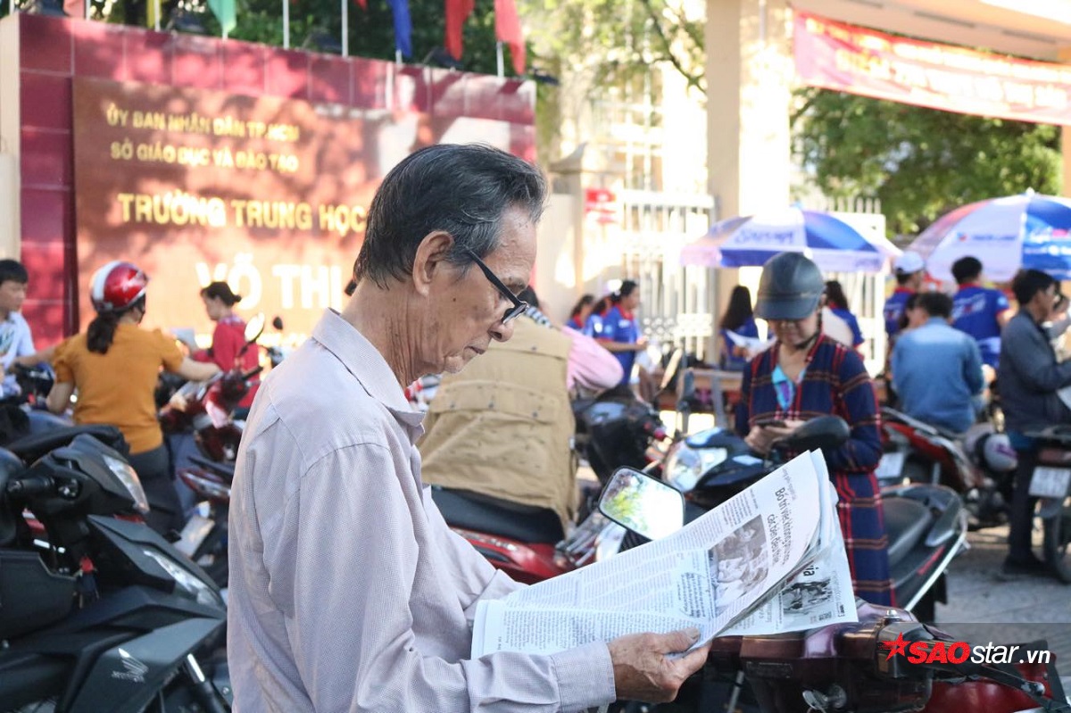 Đọc báo là cách để các phụ huynh “giết thời gian” khi đợi thí sinh thi cử.
