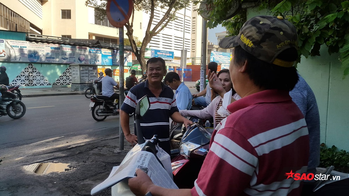 Tại điểm thi THPT Nguyễn Khuyến (Quận 10, TP.HCM), phụ huynh cũng tranh thủ đọc báo, trò chuyện sau khi đưa con em đến điểm thi.