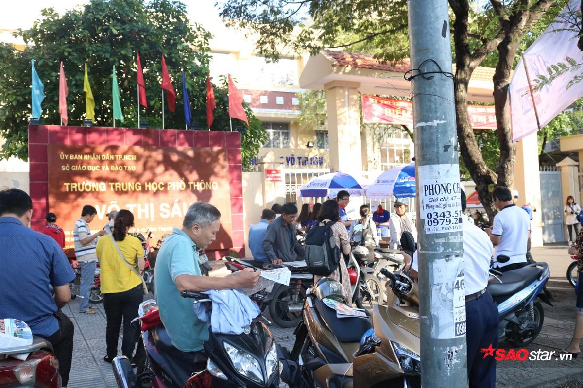 Nhiều phụ huynh sau khi đưa con em đến điểm thi sẽ ở lại chờ các thí sinh thi xong môn Ngữ Văn trong sáng nay.