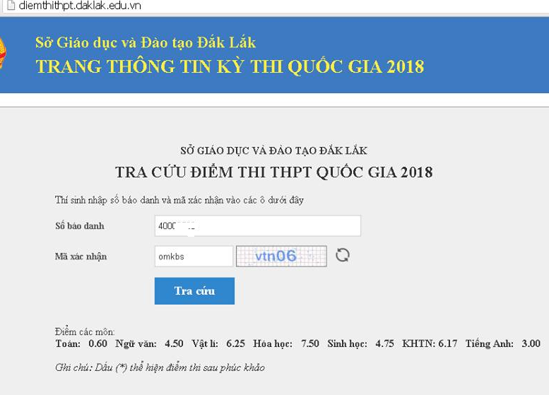 Theo VietNamNet đưa tin, sau khi Sở GD&ĐT Đắk Lắk công bố kết quả thi THPT quốc gia 2018 vào ngày 11/7, một thí sinh tại địa phương này đã rất bất ngờ khi biết điểm thi môn Toán của mình chỉ đạt 0,6 điểm. Vì bài thi bị dính điểm liệt (từ 1 trở xuống) nên thí sinh trên đứng trước nguy cơ trượt tốt nghiệp.