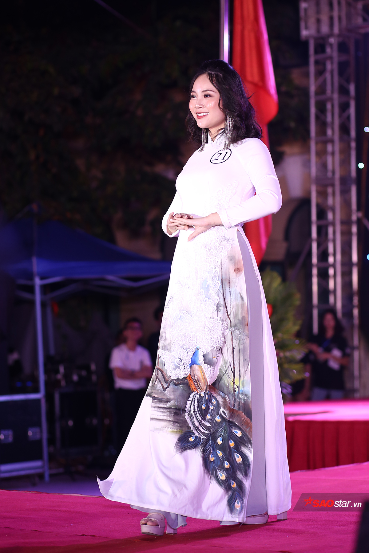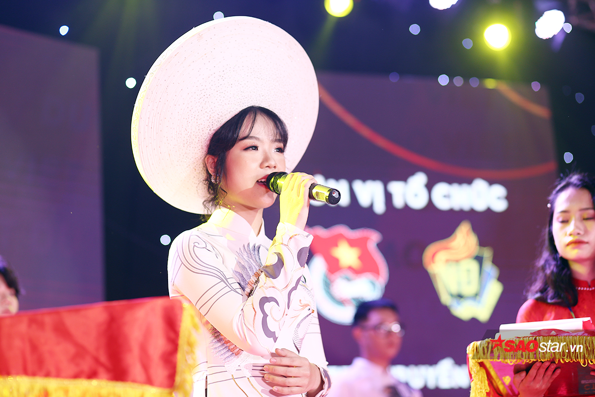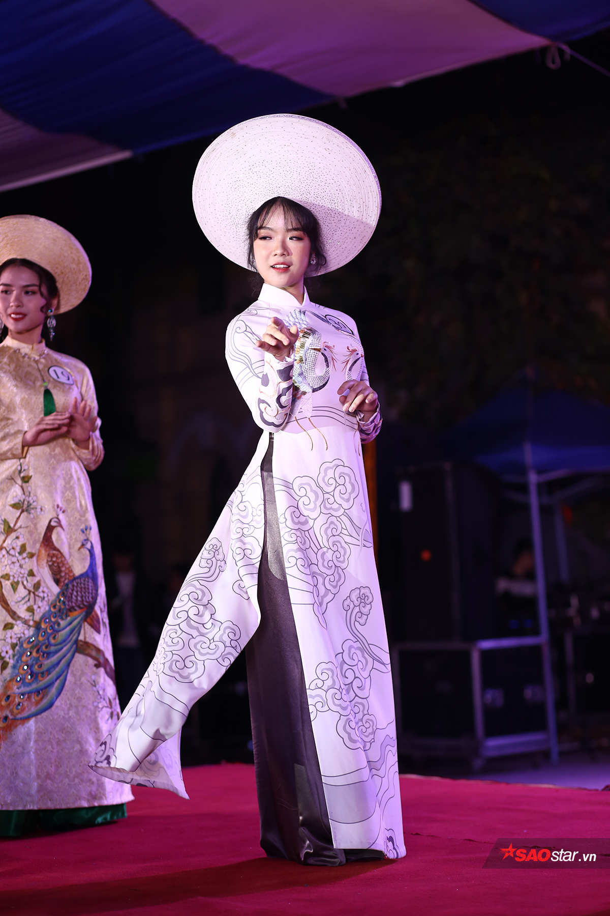 Thí sinh trình diễn áo dài xuất sắc nhất: Trần Đinh Phương Mai sải bước đầy duyên dáng