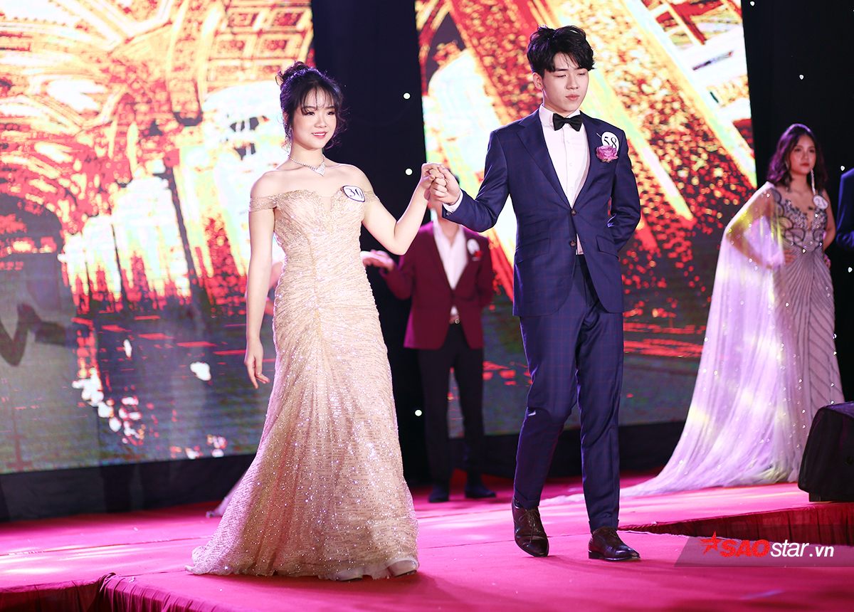 Ở phần thi dạ hội, Đặng Tú Ngọc sánh bước cùng “soái ca” Phạm Tiến Dũng - Á quân 2 chung cuộc.